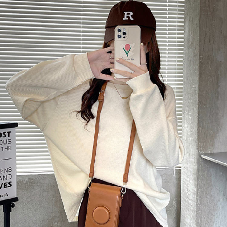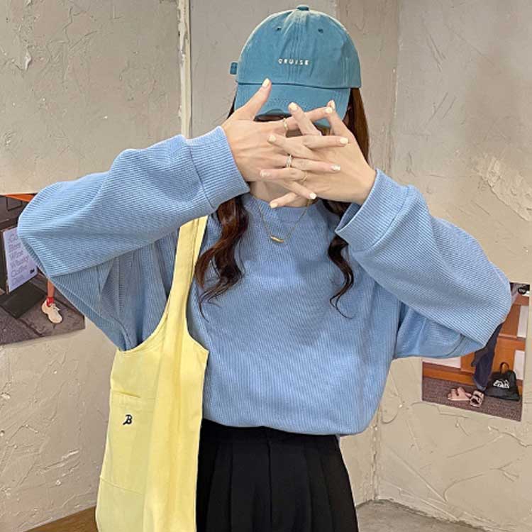 ワッフル Tシャツ レディース ロンT カットソー Tシャツ ゆったり 体型カバー 春 ワッフルカットソー 無地 長袖 ロング ゆったり ドルマン ドロップショルダー オーバーサイズ 韓国 プルオーバー ホワイト グレー ブルー ピンク ベージュ