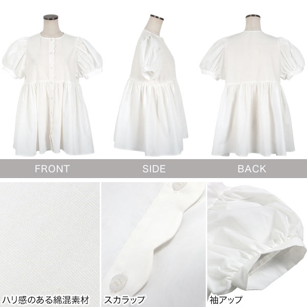 ペプラム スカラップ ブラウス レディース トップス 半袖 半袖ブラウス 二の腕 体型カバー 骨格ストレート きれいめ なみなみ チュニック フェミニン シャツ 夏 春 マタニティ ぽわん袖 パフスリーブ 着痩せ 細見え フレア ペプラムブラウス 大人 20代 30代 40代 [C7164]
