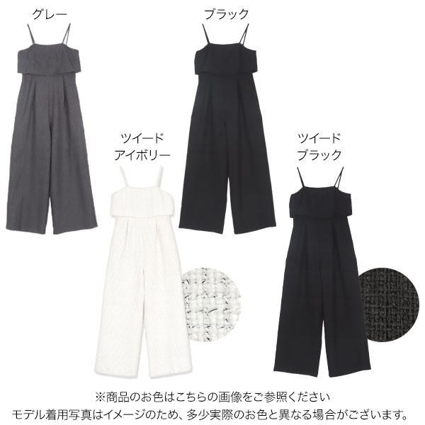 [ manaodays さんコラボ] オールインワン レディース ツイード ツイード素材 サロペット タックパンツ 高身長 フェミニン きれいめ 上品 キャミソール キャミワンピ セレモニー オケージョン ママ オフィス フォーマル 仕事 20代 30代 40代 秋 秋服 グレー 黒 白 [E3414]