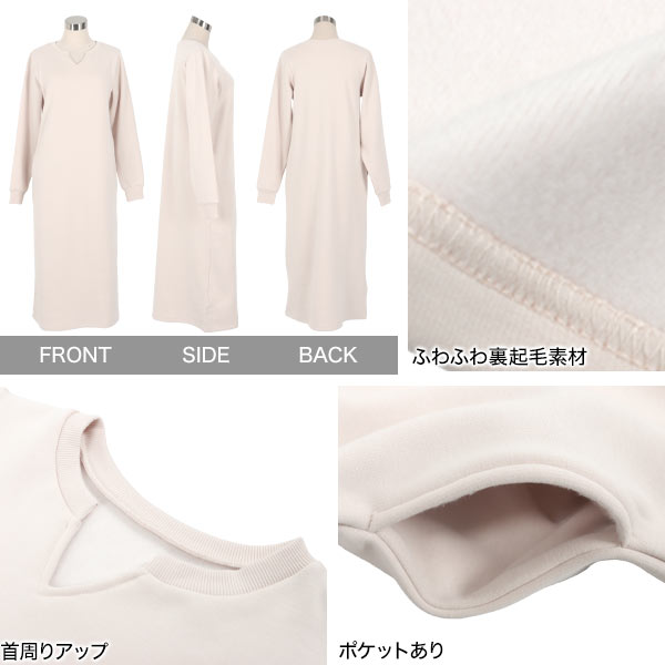 [ ぬく盛り ] 選べる丈 キーネックマキシワンピース ぬく盛り ぬくもり 裏起毛 裏シャギー ワンピース ワンピ キーネックワンピース 裏起毛ワンピ あったかワンピ マキシワンピース マキシ ロング丈 丈長め 長袖 E1121 スウェットワンピ 楽ちん 部屋着 [E3435]【送料無料】