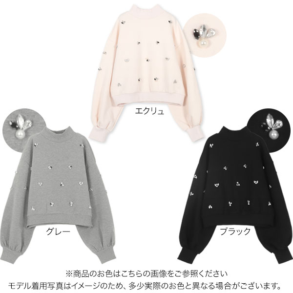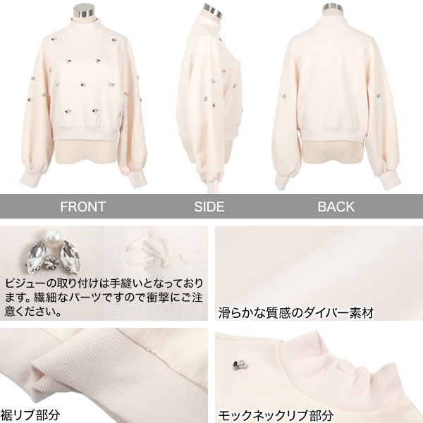 ビジューダイバーモックネックトップス [C7311] レディース 20代 30代 40代 ダイバー ダンボール スウェット スエット ビジュー モックネック ハイネック ボリュームスリーブ ぽわん袖 プルオーバー