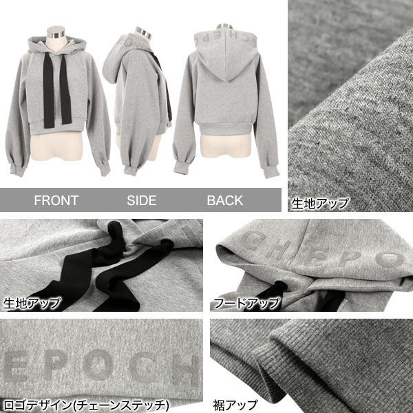 チェーンステッチ クロップド丈 フーディ トップス パーカー [C7355] レディース 20代 30代 40代 ダイバー ダンボール スウェット スエット 裏毛 ロゴ ステッチ 刺繍 ボリュームスリーブ オーバーサイズ 体型カバー 大人可愛い カジュアル シンプル 着回し 【送料無料】