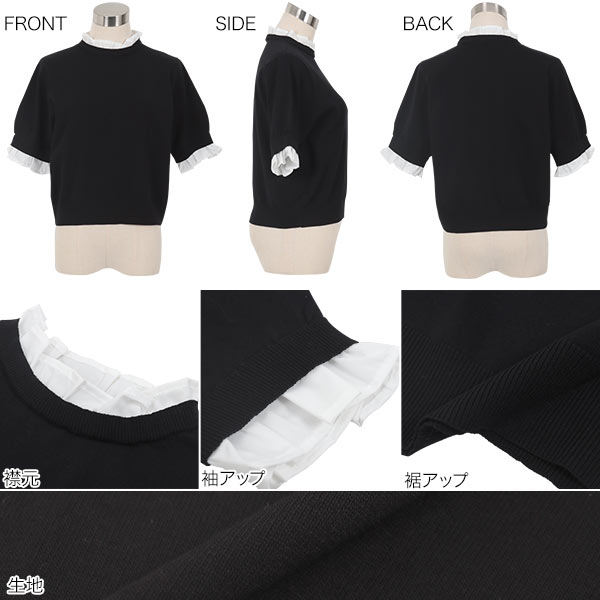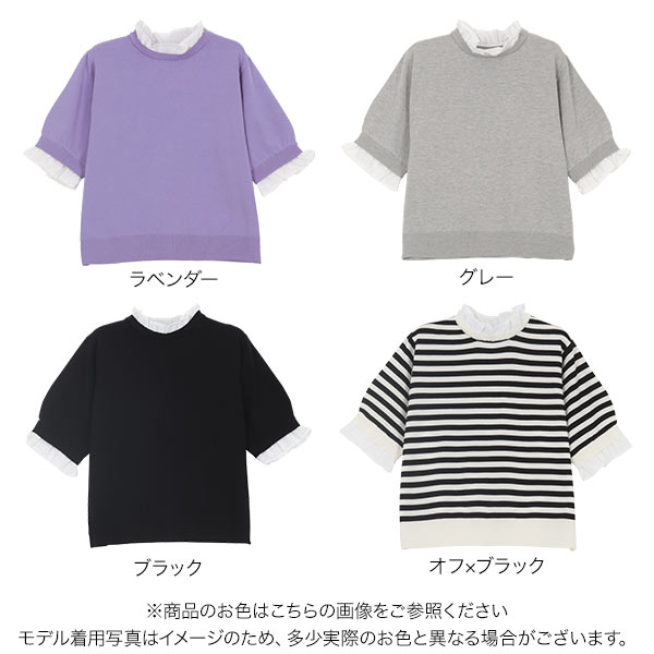 ≪ 20%offクーポン対象 ≫ シャツ レイヤード風 サマーニット トップス [C7411] レディース 20代 30代 40代 ニット ボーダー 半袖 セーター ブラウス スタンドカラー フリル ギャザー レイヤード 重ね着 春 夏 フリルシャツ 上品 可愛い 大人可愛い【送料無料】