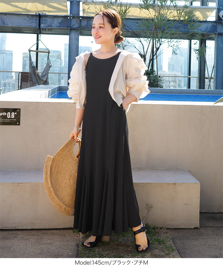 [ 田中亜希子さんコラボ ]選べる2丈 カップ付きランダムリブアメスリワンピース [E3447] レディース 20代 30代 40代 小柄 亜希子 あきこ akiico 低身長 プチ アキコ マキシワンピース マキシワンピ リブワンピ ヘルシー 春 夏 春服 夏服 リゾート お出かけ 旅行