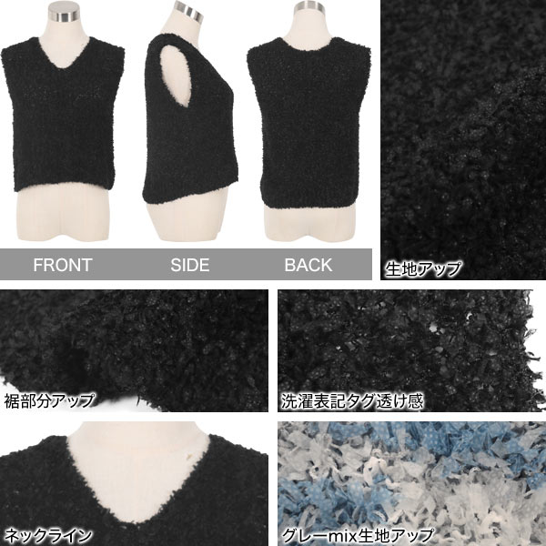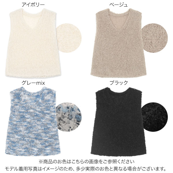 ベスト ニットベスト ノースリーブ トップス [C7489] レディース 20代 30代 40代 ブークレ Vネック Tシャツ 春 夏 秋 春服 ふわふわ ゆるふわ 気持ちいい 軽い ラフ レイヤード トレンド 可愛い 大人可愛い お出かけ 旅行 デート 着回し シーズンレス 重ね着