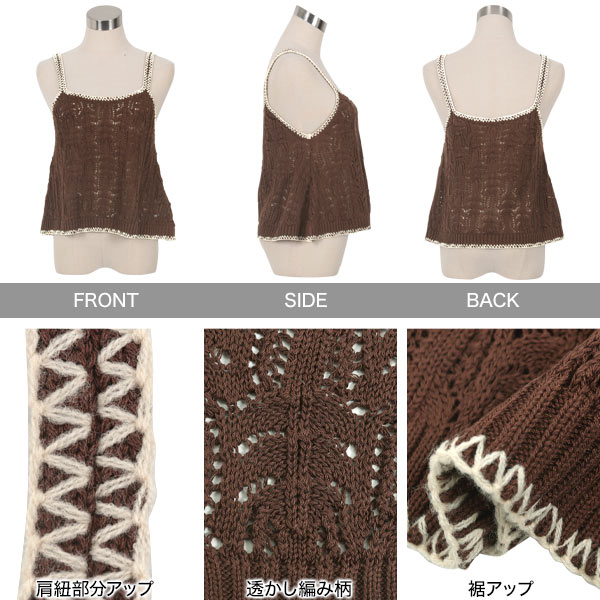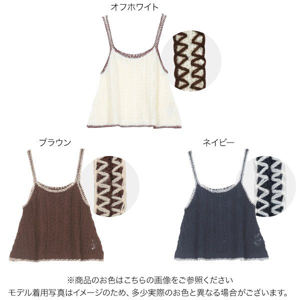≪5/27 24Hセール2890円 送料無料≫ ニット ニットベスト キャミソール サマーニット ステッチニット [C7462] キャミ ノースリーブ ベスト ビスチェ ボヘミアン 刺繍 ステッチ 透かし編み 春夏 春服 夏服 レイヤード フレア フレアシルエット 体型カバー【送料無料】