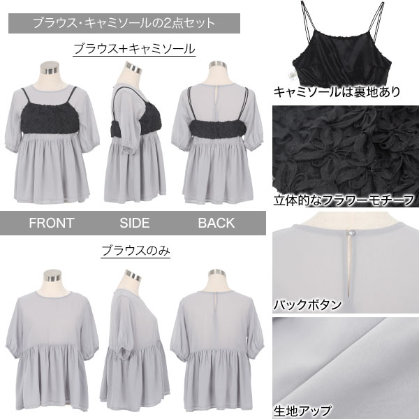 [ Petitle プチレ ] 低身長 低身長サイズ 低身長さん向け ブラウス シアー フラワー キャミソール シアーブラウス [C7450] 低身長さんサイズ 低身長さん向けサイズ 小柄 低身長コーデ サイズ プチサイズ オフ オフホワイト 白 2点セット 可愛い 大人可愛い 体型カバー
