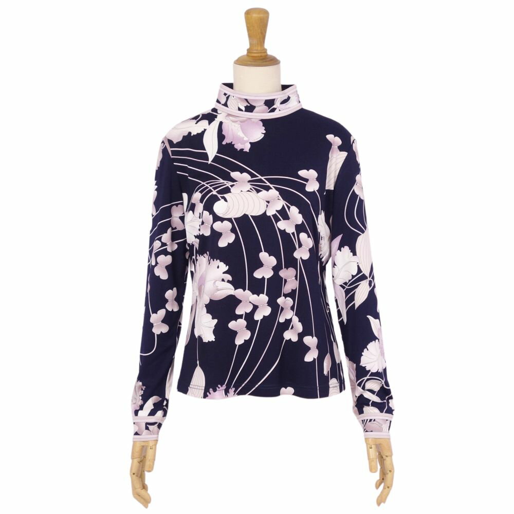 【美品】レオナール LEONARD FASHION シャツ ブラウス ハイネック ジャージー 花柄 トップス レディース L マルチカラー【中古】