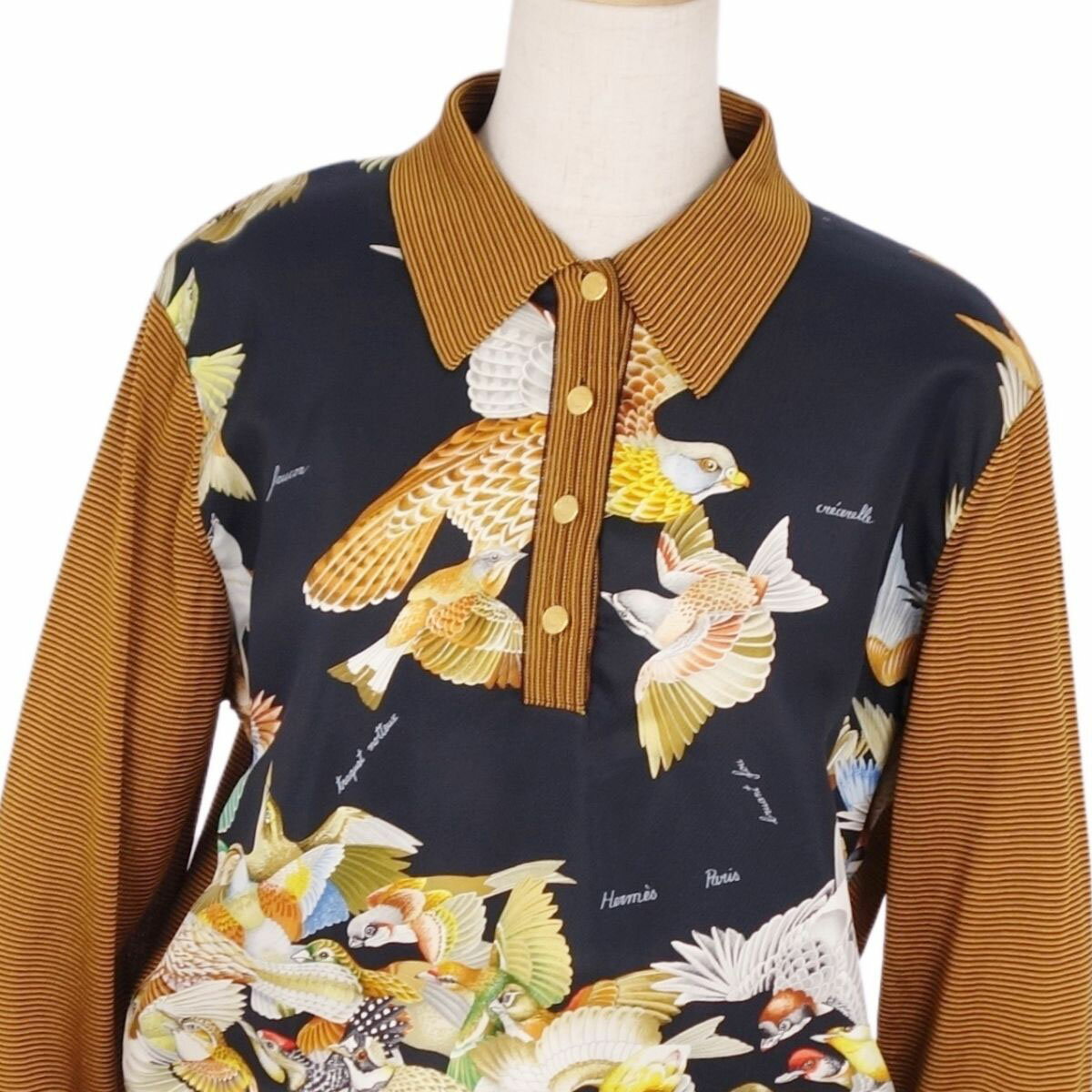 【美品】Vintage エルメス HERMES ニット シャツ ブラウス ポロシャツ ロングスリーブ 長袖 セリエボタン シルク切替 トップス レディース 40(M相当) マルチカラー【中古】