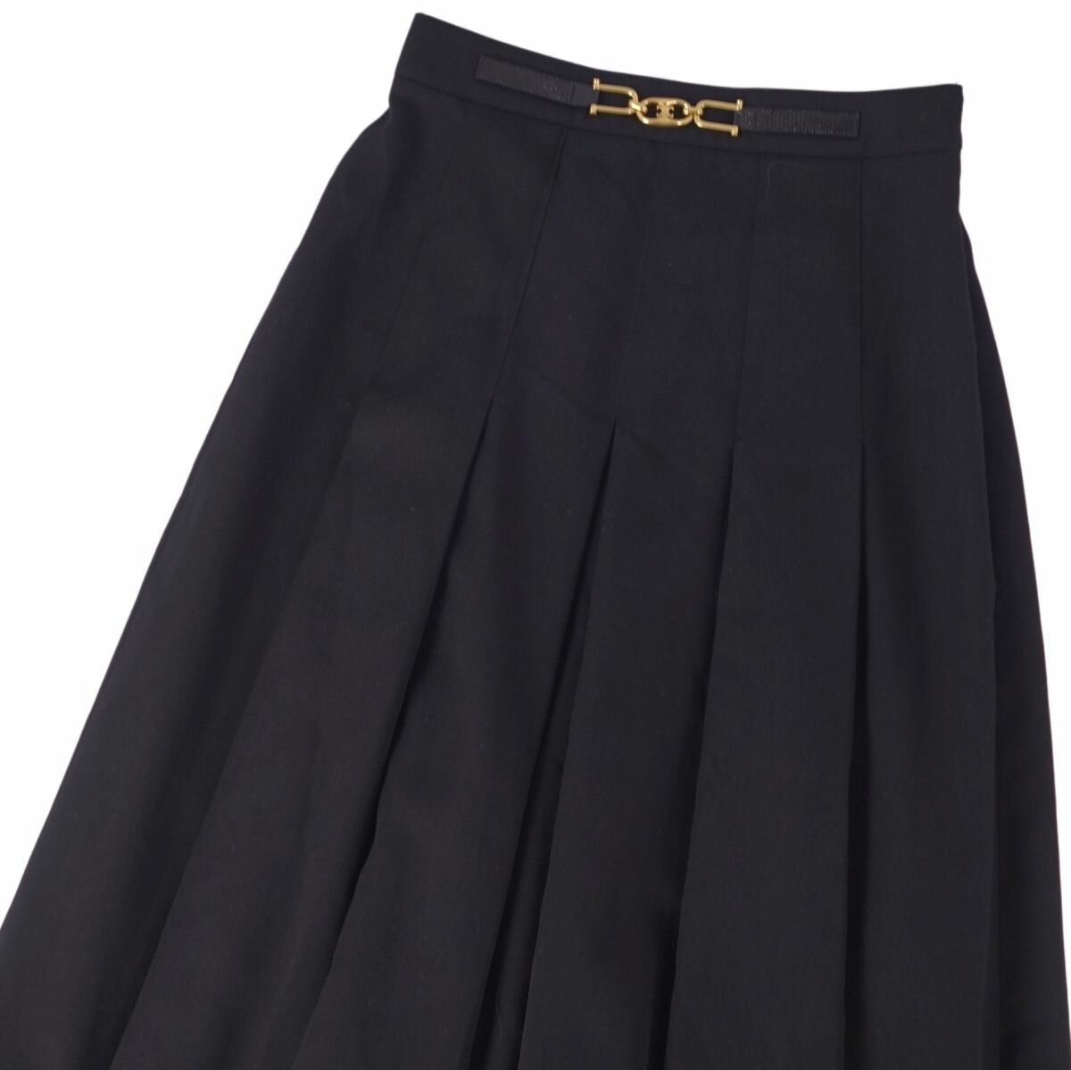 【極美品】セリーヌ CELINE スカート ロングスカート プリーツ トリオンフ マカダム金具 ウール ボトムス レディース 38(M相当) ブラック【中古】