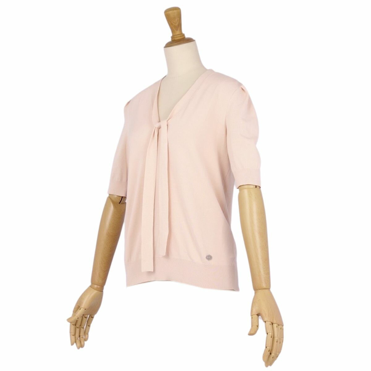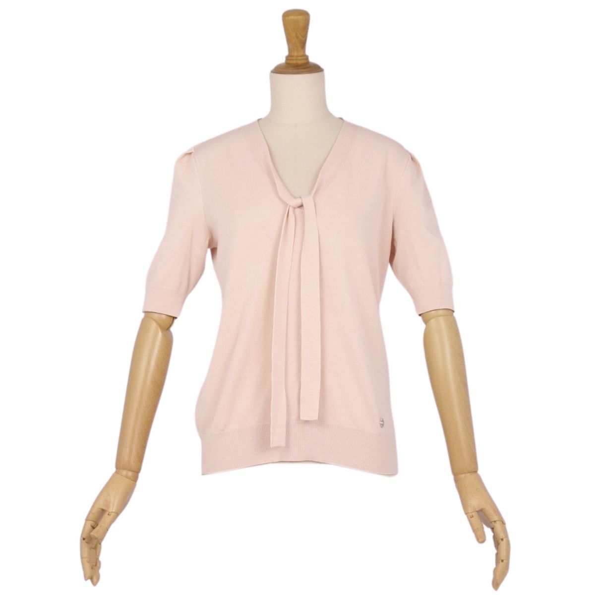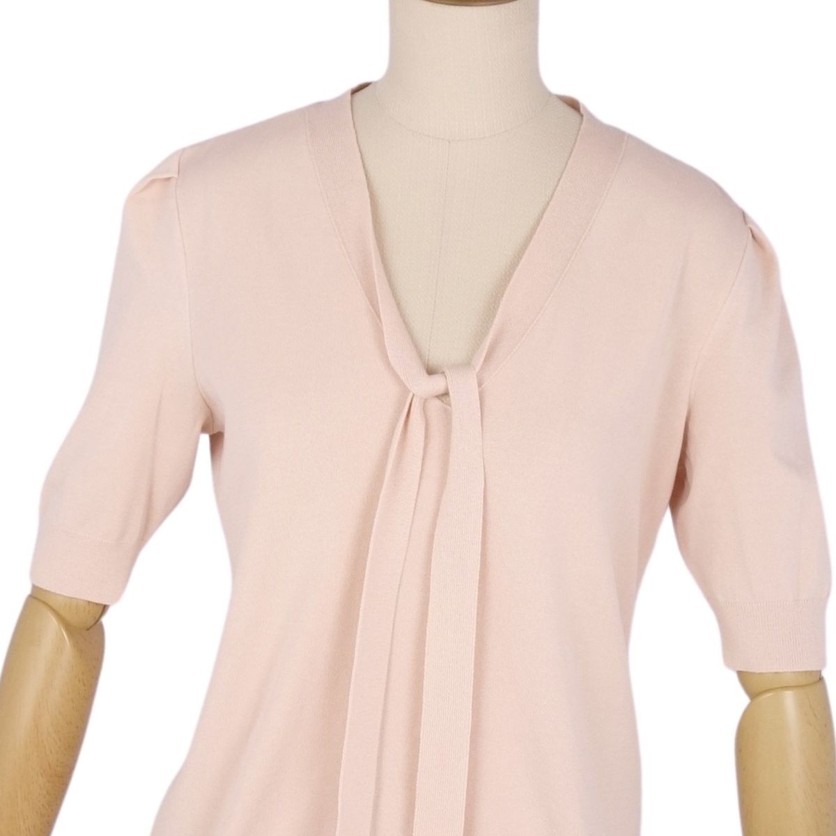 【極美品】フォクシー FOXEY ニット セーター リボン ショートスリーブ コットン トップス レディース 38(M相当) ピンク【中古】