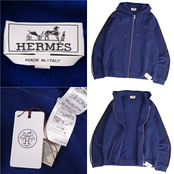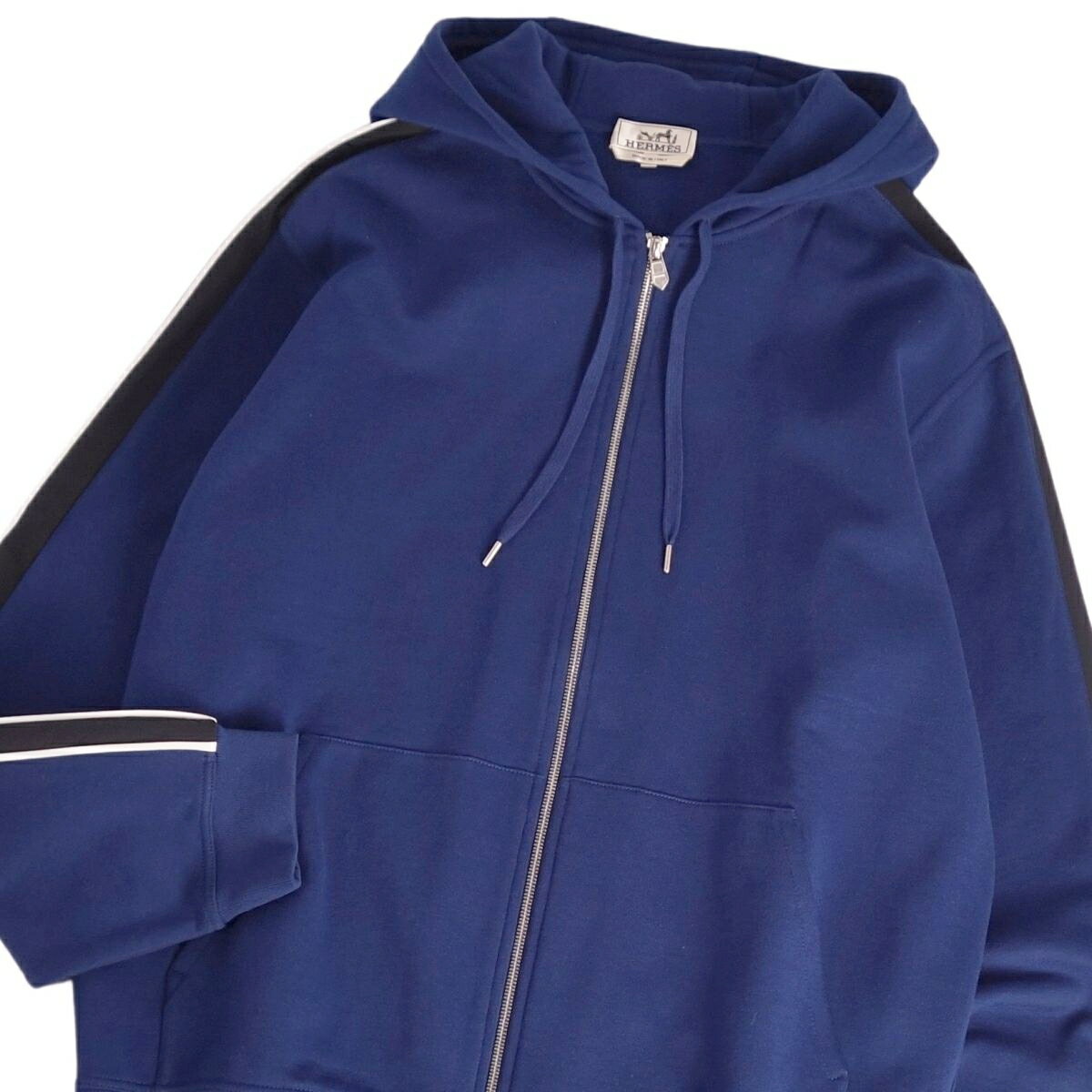 【新古品】エルメス HERMES パーカー スウェット 23SS ランH RUN H フーディー ジップアップ サイドライン コットン トップス メンズ XXL ネイビー【中古】