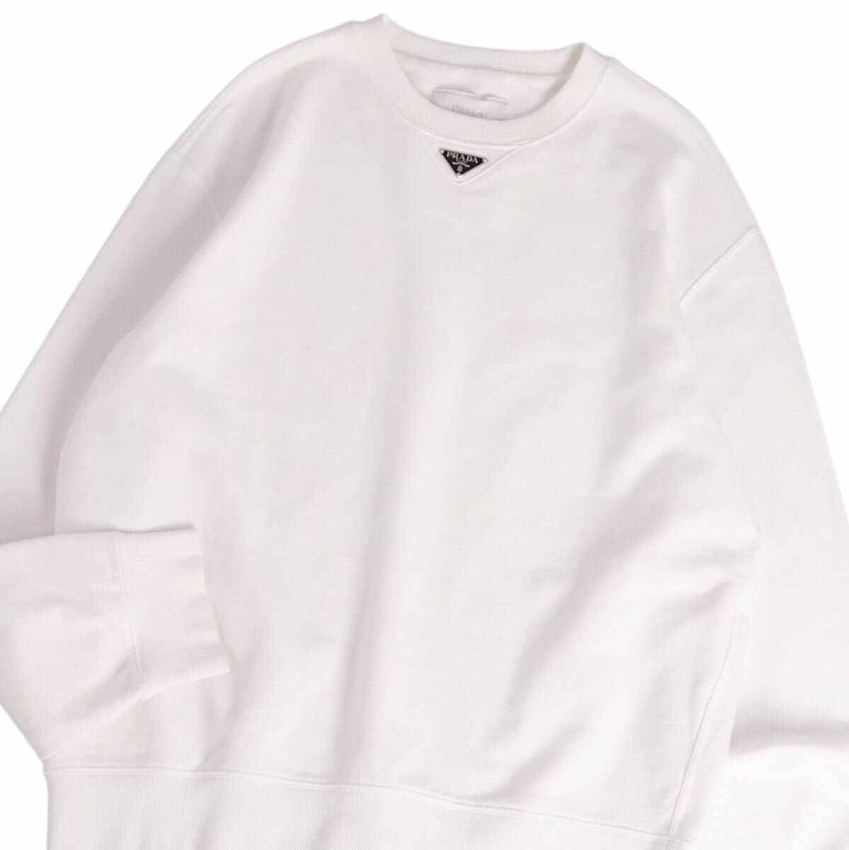【美品】プラダ PRADA スウェット 2023 トレーナー UJL26A オーバーサイズ トライアングル コットン トップス メンズ イタリア製 M ホワイト【中古】