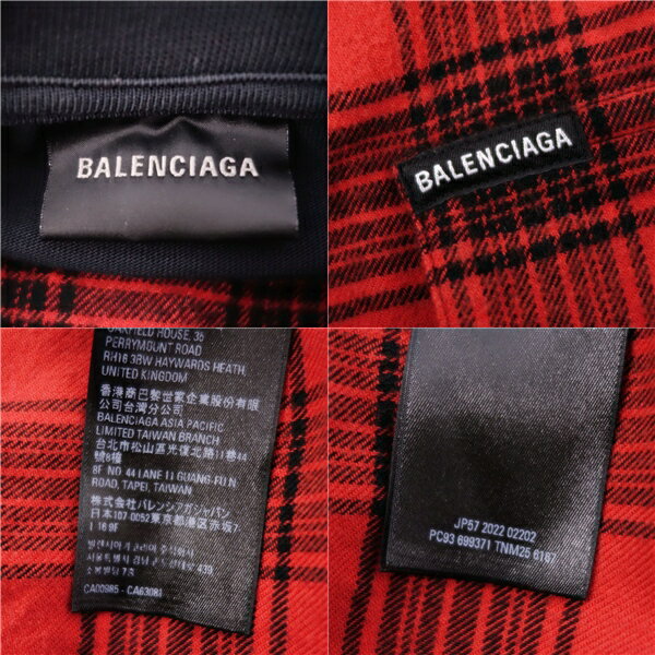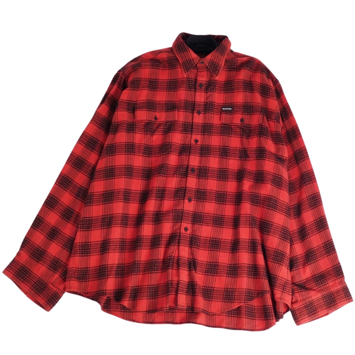【美品】バレンシアガ BALENCIAGA シャツ 2022 プルオーバー レイヤード オーバーシルエット フランネル コットン トップス メンズ イタリア製 2(M相当) レッド【中古】