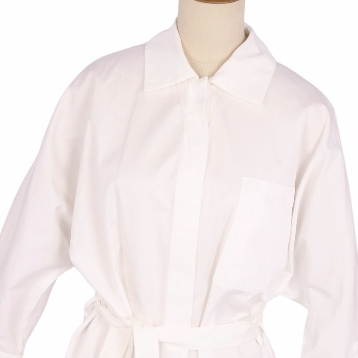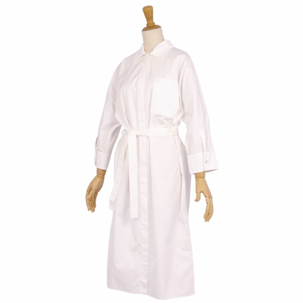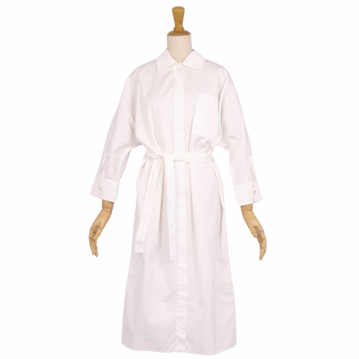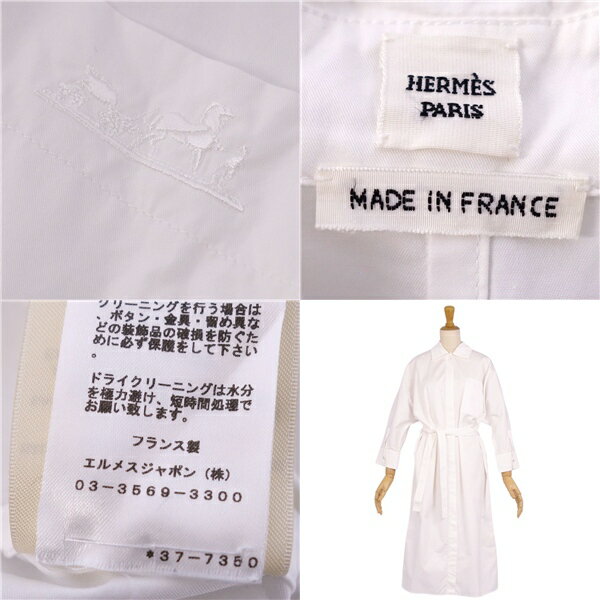 【美品】エルメス HERMES 23AW ワンピース シャツワンピース ロングスリーブ 長袖 馬車刺繍 フランス製 コットン トップス レディース 36(S相当) ホワイト【中古】