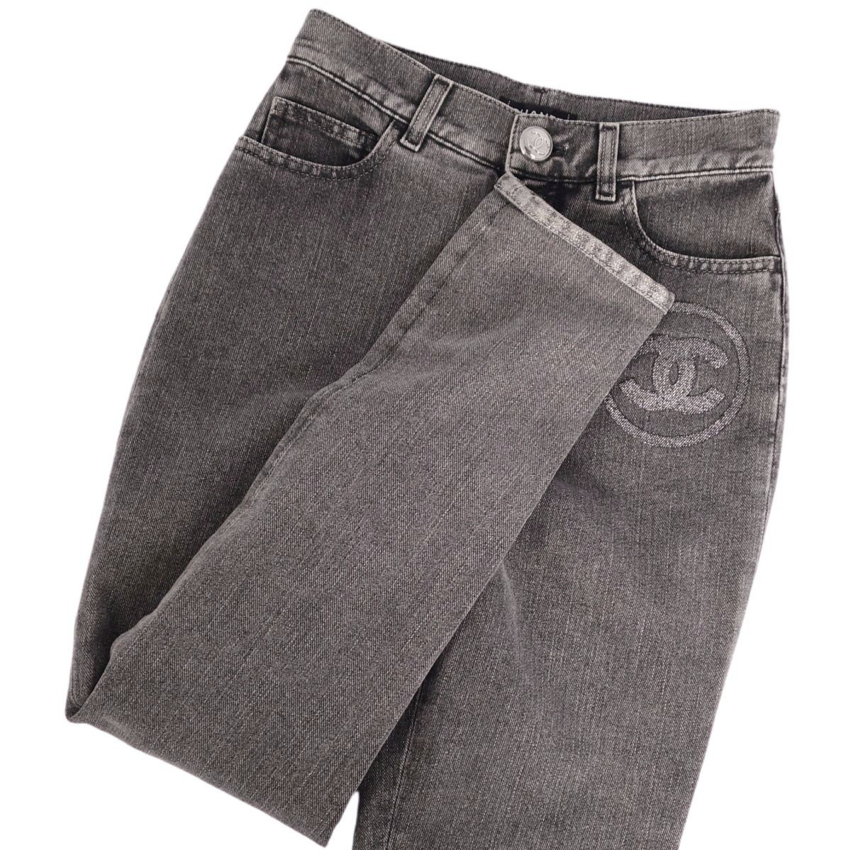 【極美品】シャネル CHANEL パンツ P74150 デニムパンツ ココマーク コットン ボトムス レディース イタリア製 34(S相当) ブラック【中古】