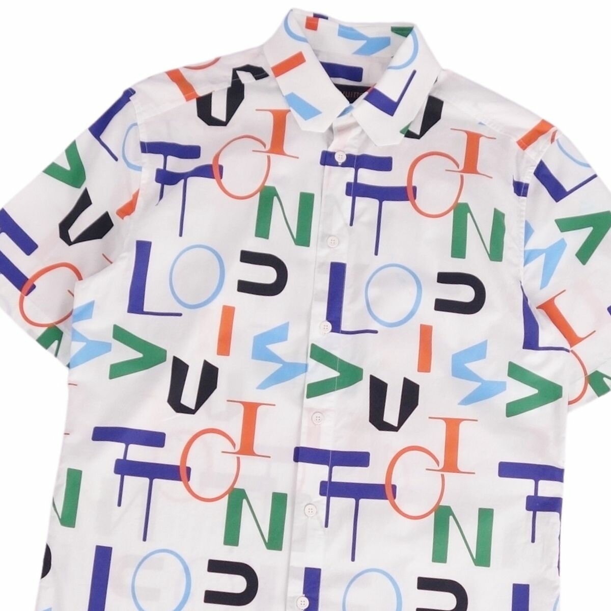 【美品】ルイヴィトン LOUIS VUITTON シャツ LVSEエレクトリックレギュラー DNA 総柄 ロゴ コットン トップス メンズ イタリア製 XS マルチカラー【中古】