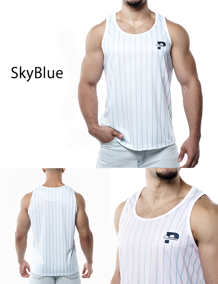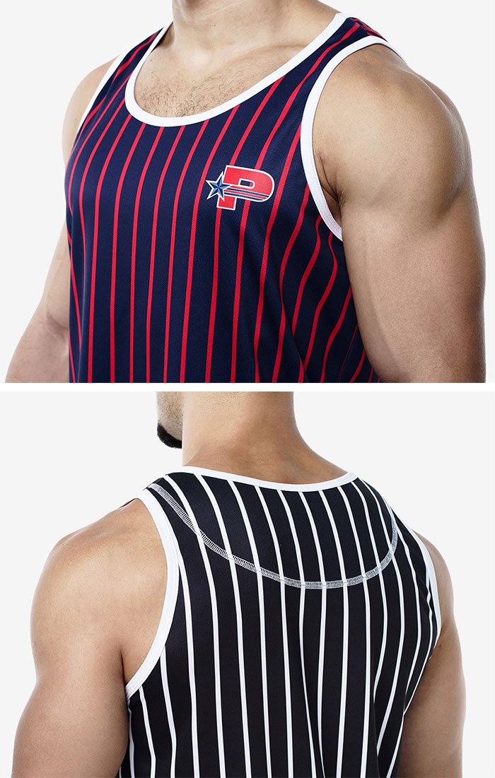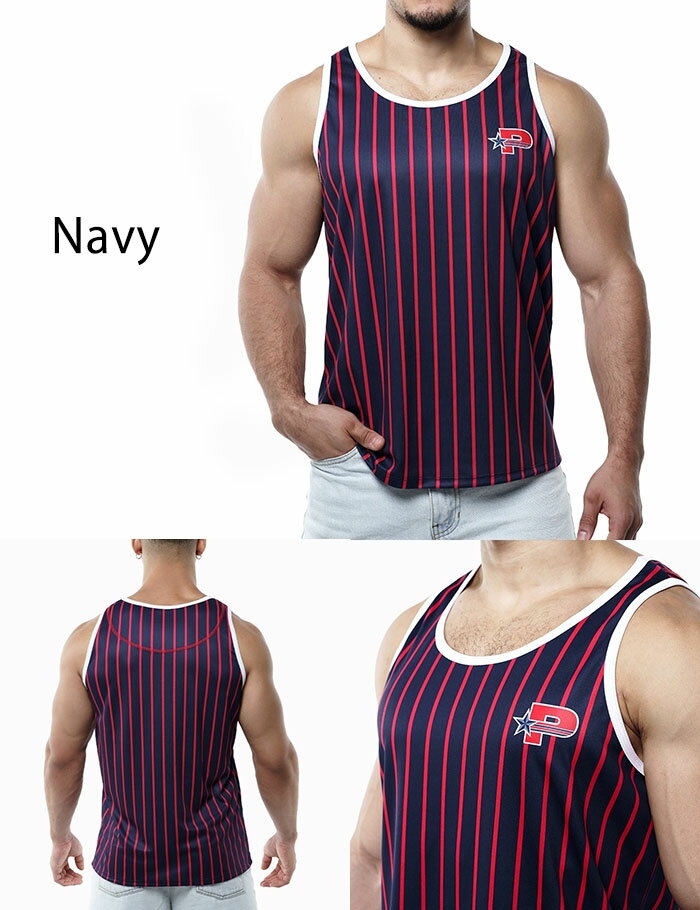 タンクトップ PUMP ストライプ タンク トレーニングウェア トップス PUMP!Underwear パンプ STRIPED TANK TOP ハイブランド メンズ 男性 スポーツウェア フィットネス 筋トレ UVPF 50+ 日焼け防止 吸湿速乾 軽い 夏服 おしゃれ