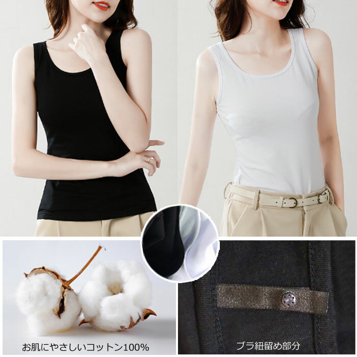 【スーパーSALE限定半額商品】 ブラ紐隠し インナー タンクトップ コットン 綿 100% 透け防止 トップス レディース ブラ紐を隠せるインナー 抗菌 消臭 ドライ 袖なし ノースリーブ 肌着 白 黒 大きいサイズ M L LL