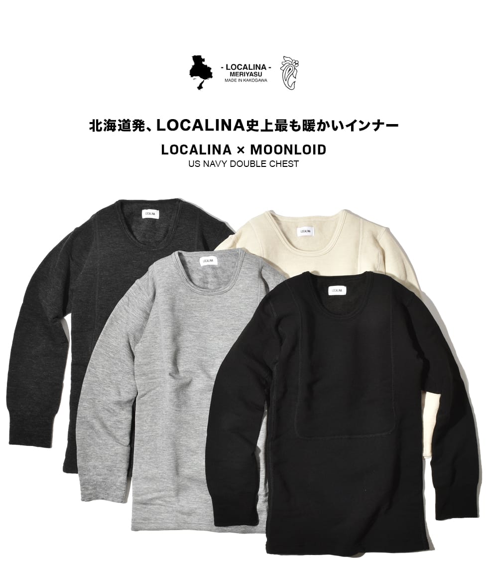 ロカリナ メリヤス もちはだ 別注 クルーネック ダブルチェスト カットソー メンズ レディース LOCALINA MERIYASU motihada MOONLOID Crew U.S. NAVY USN アンダーウェア もちはだ起毛 防寒インナー ワシオ バイク防寒 日本製