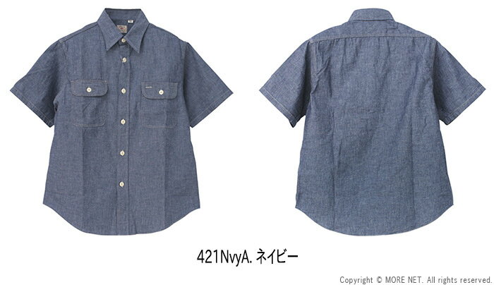 ●シュガーケーン SUGAR CANE ブルーシャンブレーワークシャツ SC37941 メンズ 日本製 半袖 2024春夏