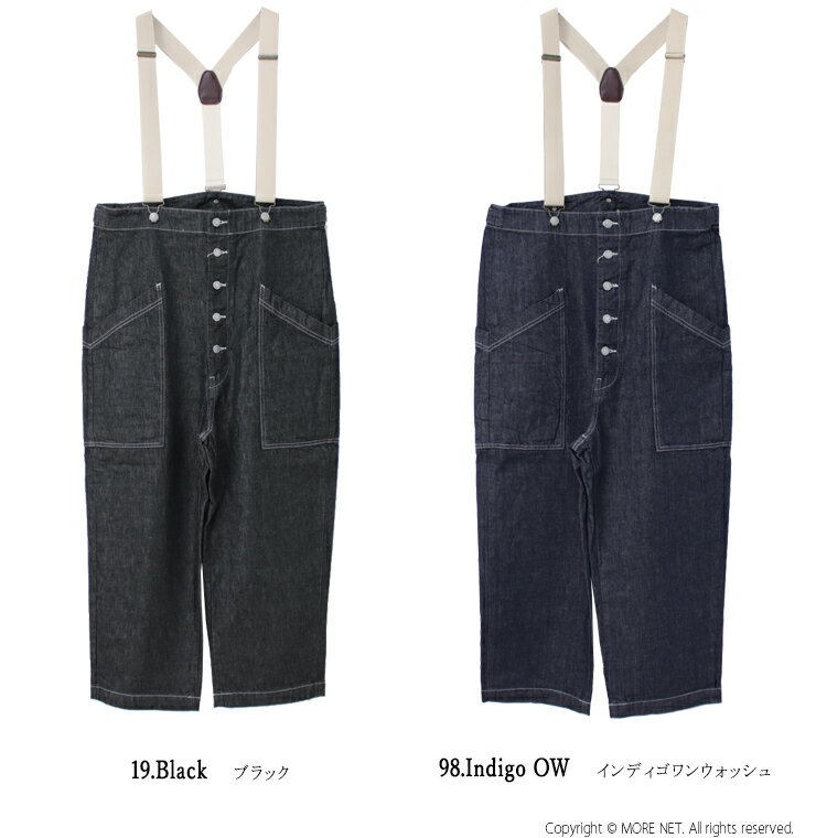 クーポン対象_ハーベスティ HARVESTY 10ozノンフェイドデニムサスペンダーガーデンパンツ A12401 日本製 ワイド レディース メンズ■
