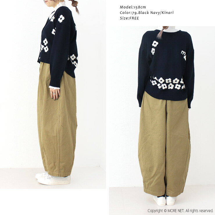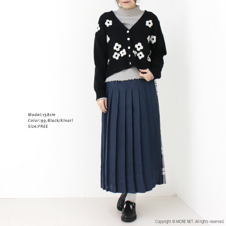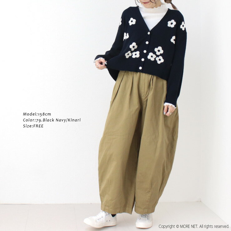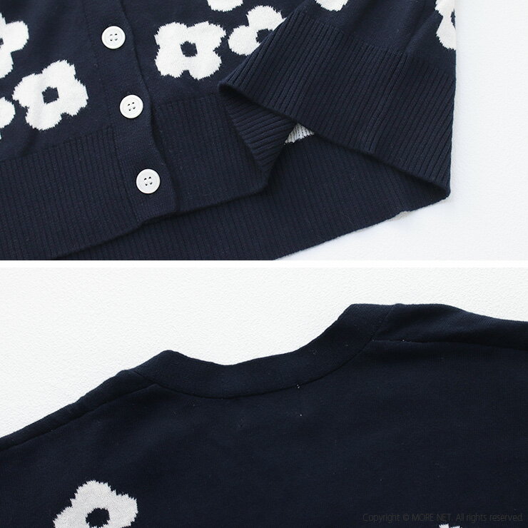 マオメイド mao made やわらかコットンお花ダブルジャガードVネックカーディガン 511143 ショート丈 花柄 ウォッシャブル 洗える レディース 2025春夏