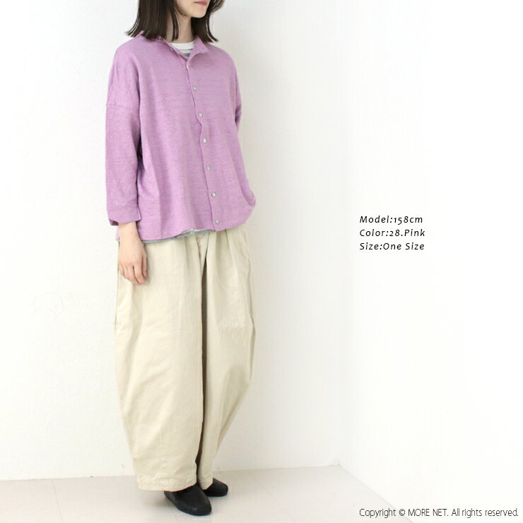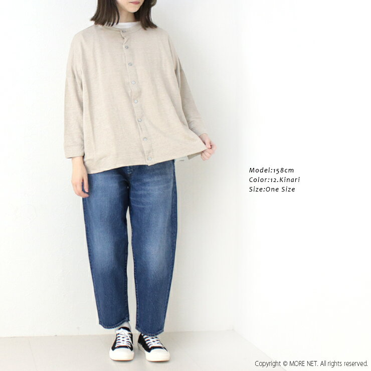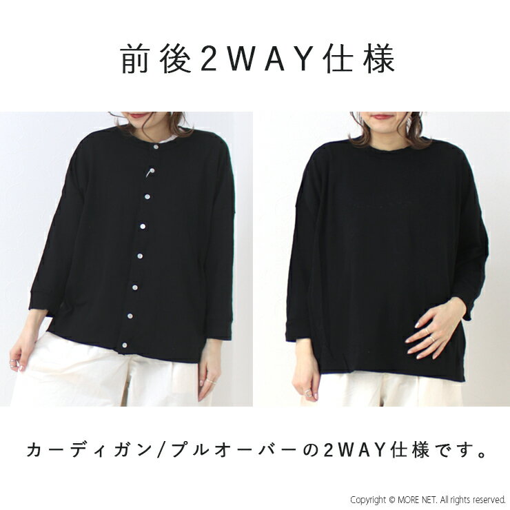 プリット prit 40/1ヨーロッパリネン天竺 7分袖2wayワイドカーディガン P91558 日本製 羽織 ボタン 無地 レディース 2025春夏