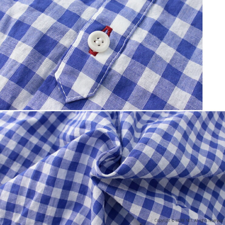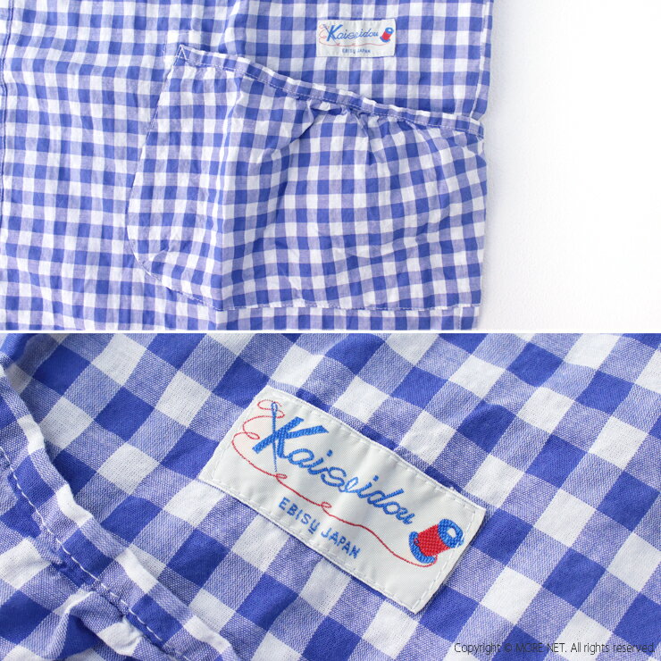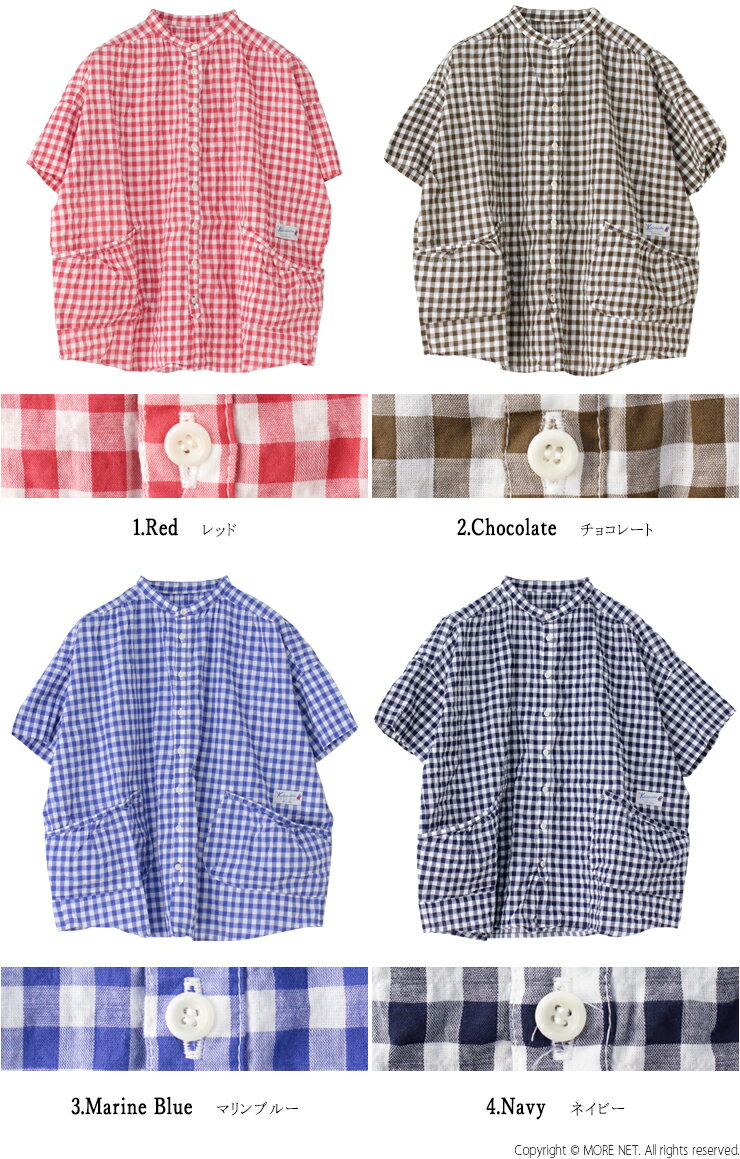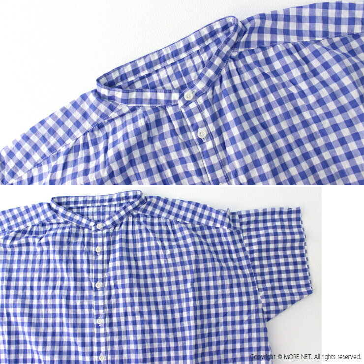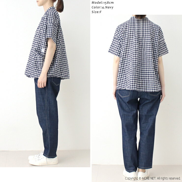 快晴堂 かいせいどう ゆらぎギンガムチェック半袖スタンド背タックシャツ 51S-46 日本製 ブラウス トップス ワイド レディース 2025春夏