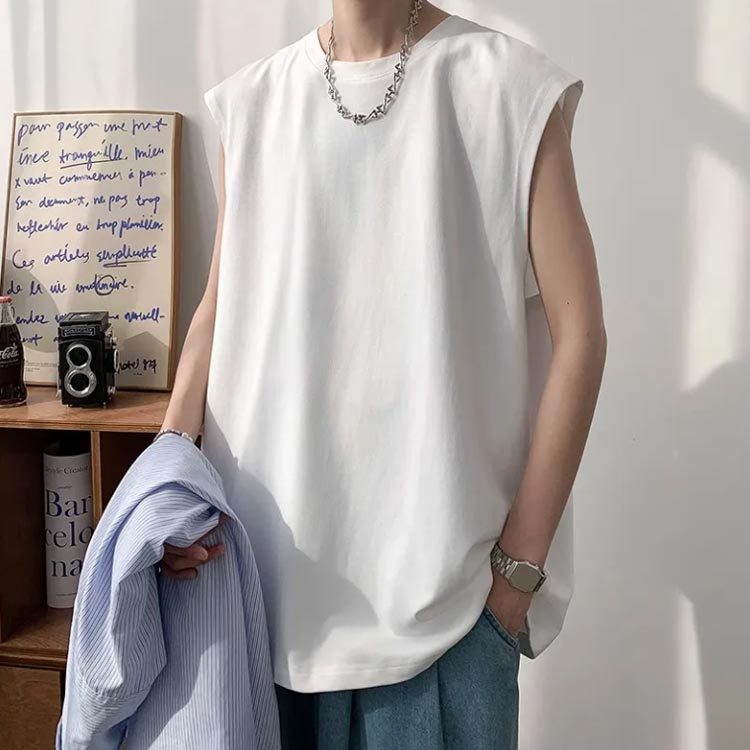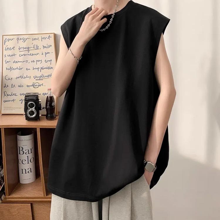 メンズ スポーツ カジュアル ノースリーブ クルーネック 薄手 ストリート インナー 夏 カットソー オーバーサイズ 春 ゆったり ドロップショルダー 男性 tシャツ サマー 筋トレ ウェア 袖なし 大きいサイズ 春 M 無地 シンプル 2枚セット L XL 2XL 3XL 4XL タンクトップ