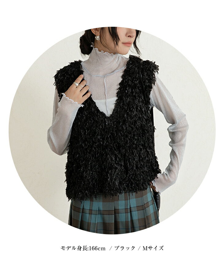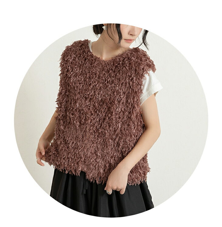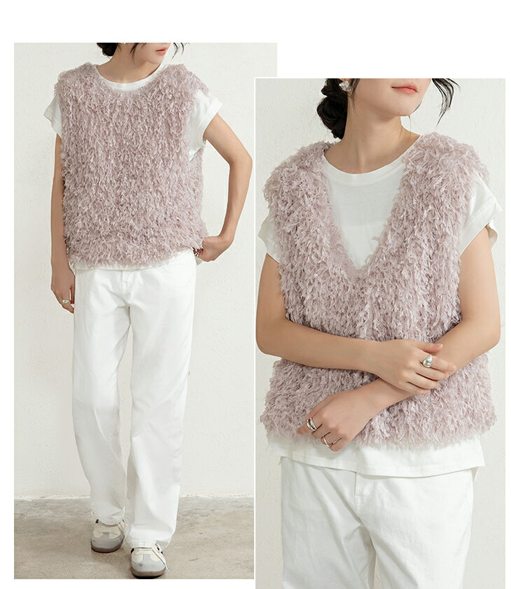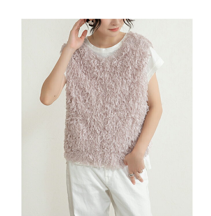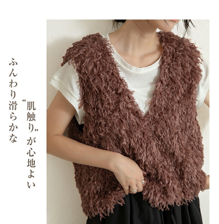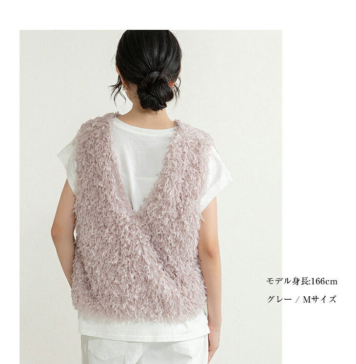 前後2wayVネックシャギーニット モールフェザー シャギーニット レイヤード ベスト ニットベスト Vネック ラウンドネック コーデ 重ね着 上品 カジュアル レディースファッション 20代 30代 40代 50代 60代 ワンピスター