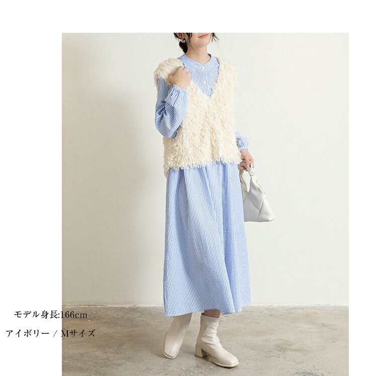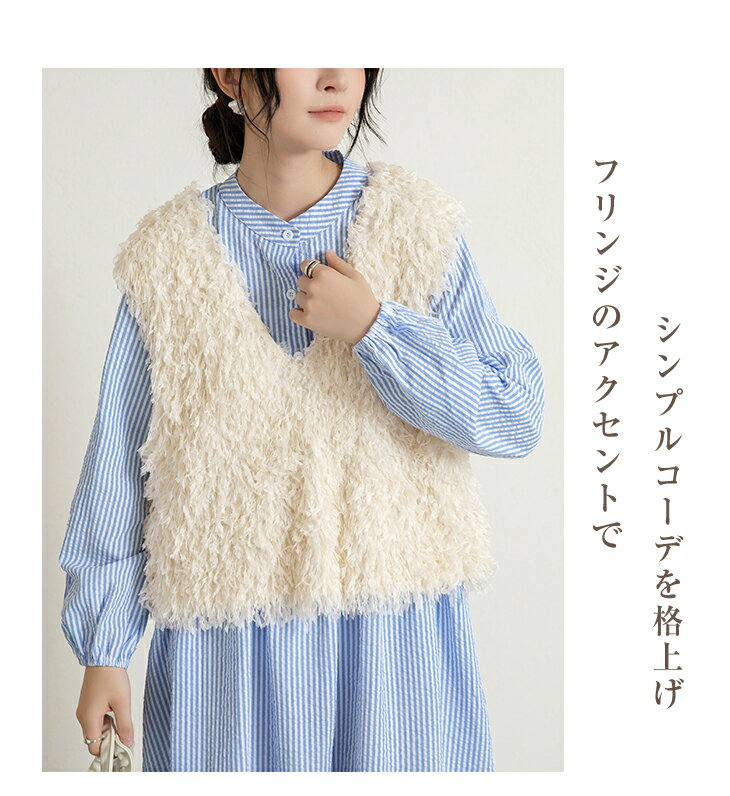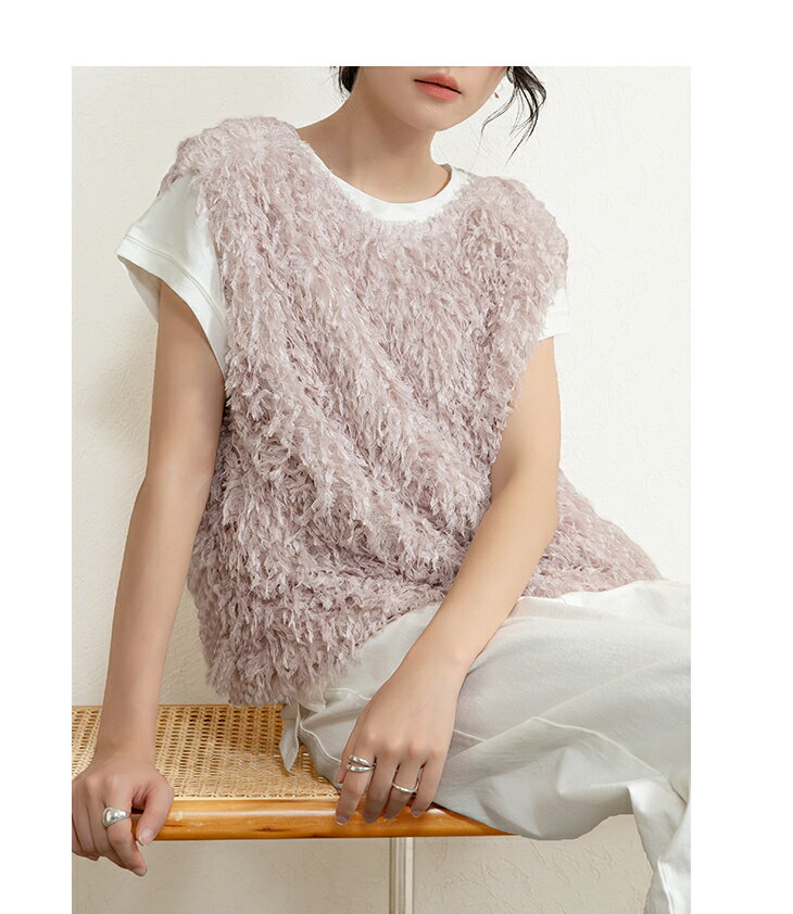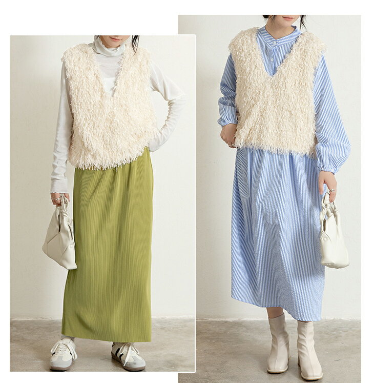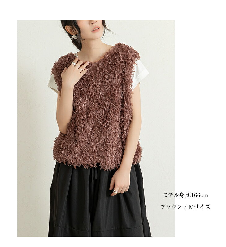 前後2wayVネックシャギーニット モールフェザー シャギーニット レイヤード ベスト ニットベスト Vネック ラウンドネック コーデ 重ね着 上品 カジュアル レディースファッション 20代 30代 40代 50代 60代 ワンピスター