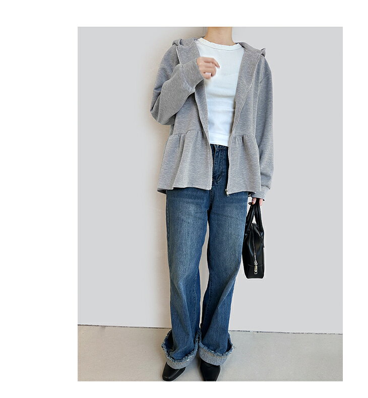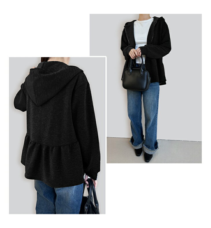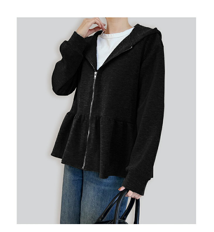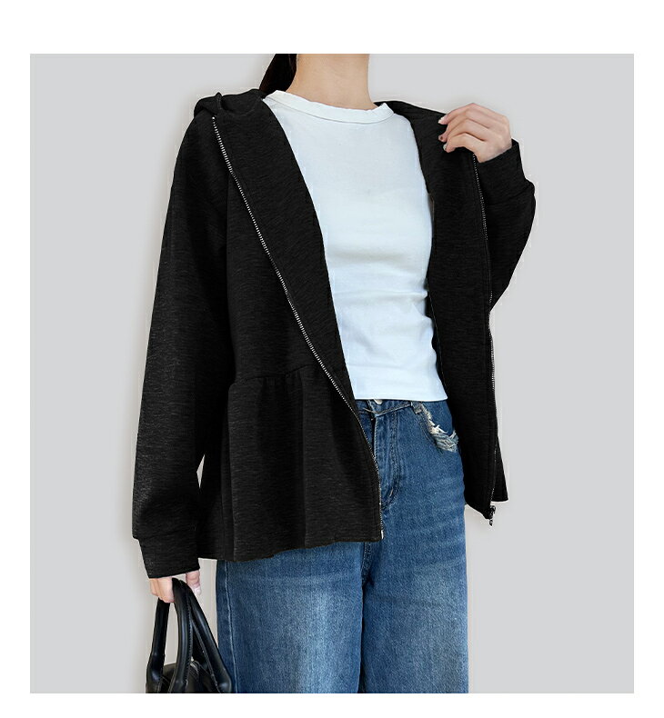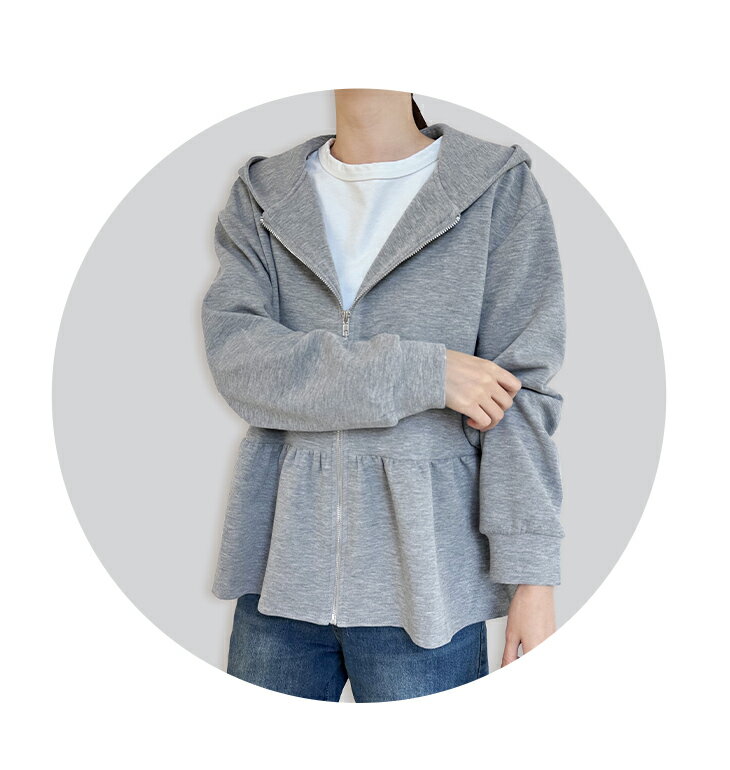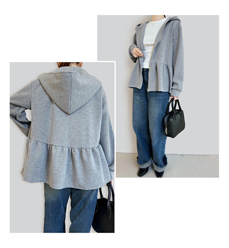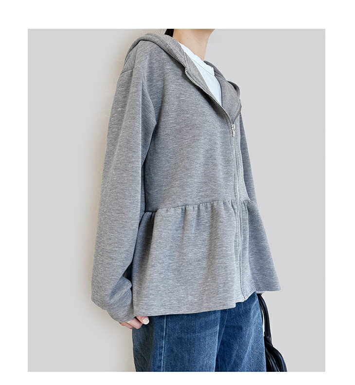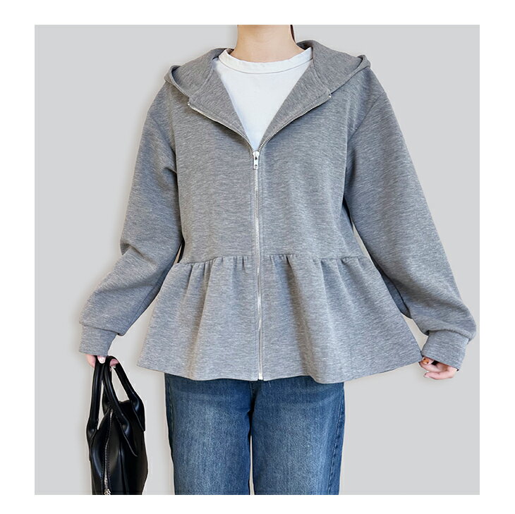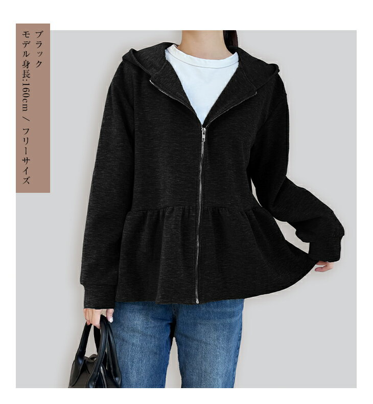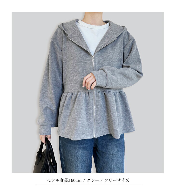 ペプラム パーカー フロントジップ フード付き ゆったり 楽ちん オーバーサイズ トップス アウター コットン 綿 長袖 韓国ファッション レディースファッション 20代 30代 40代 50代 60代 ワンピスター 春 秋 冬 AW
