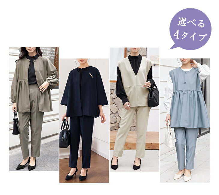 【2/20 50%OFF!2点購入クーポンで】選べる4タイプ オケージョン セットアップ パンツスーツ レディースファッション ウエストゴム ポケット付き オーバーサイズ 体型カバー マタニティ 結婚式 入学式 卒業式 20代 30代 40代 50代 60代 ワンピスター 春 夏 秋