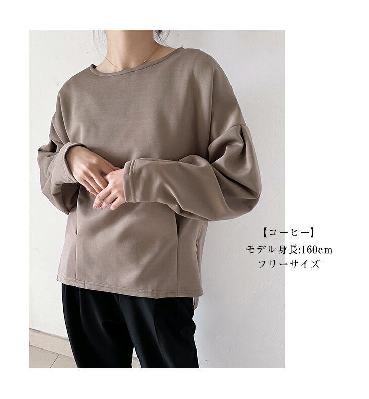 【 2点で半額クーポン対象 11日01:59迄】ボリュームスリーブ シャツ カットソー ラウンドネック トップス 長袖 レディースファッション ゆったり 楽ちん オーバーサイズ 体型カバー マタニティ カジュアル オフィス 仕事着 20代 30代 40代 50代 60代 ワンピスター 春 秋