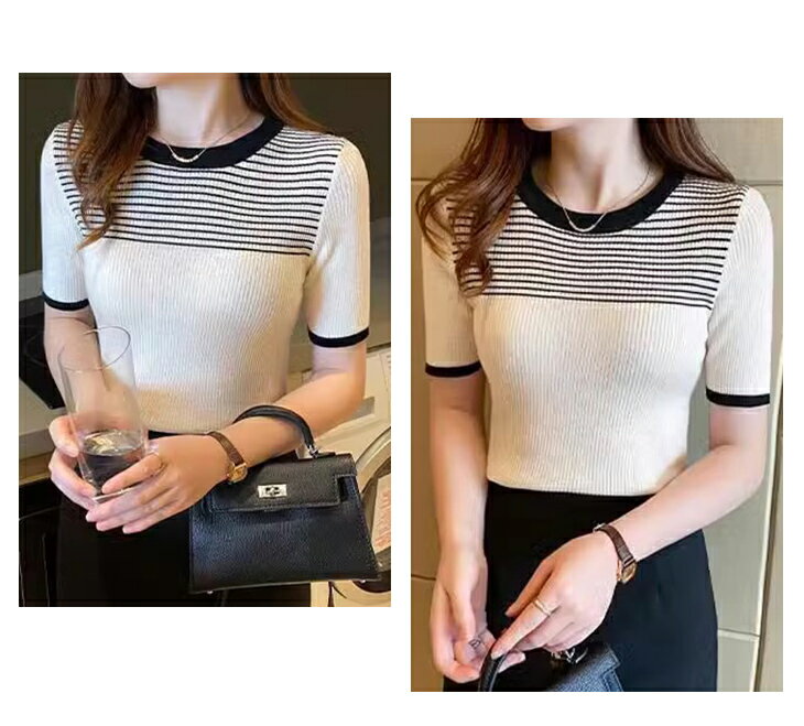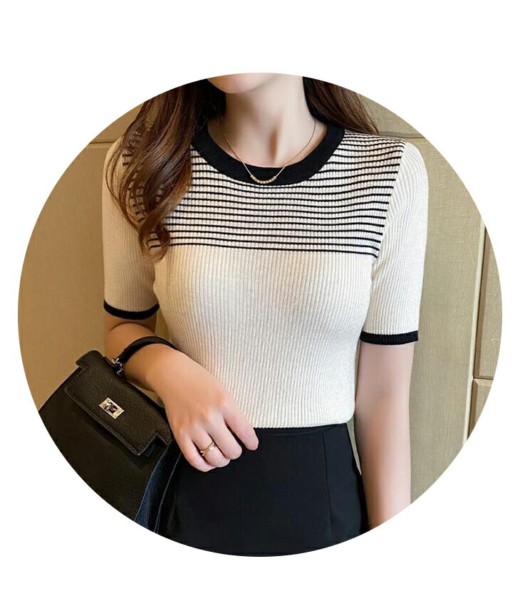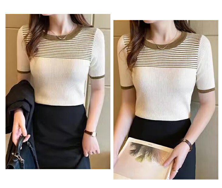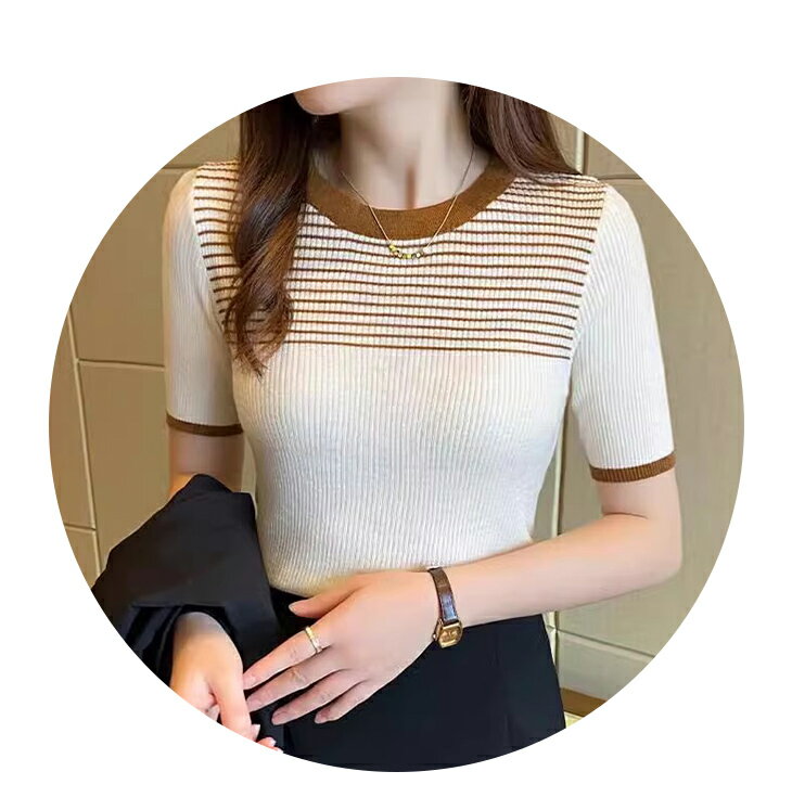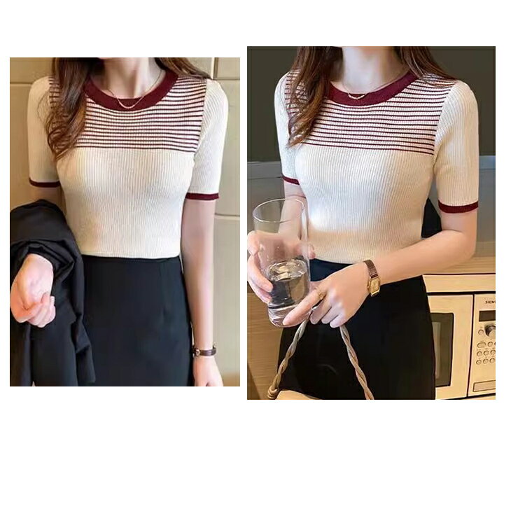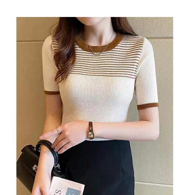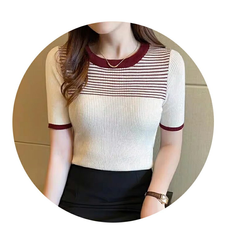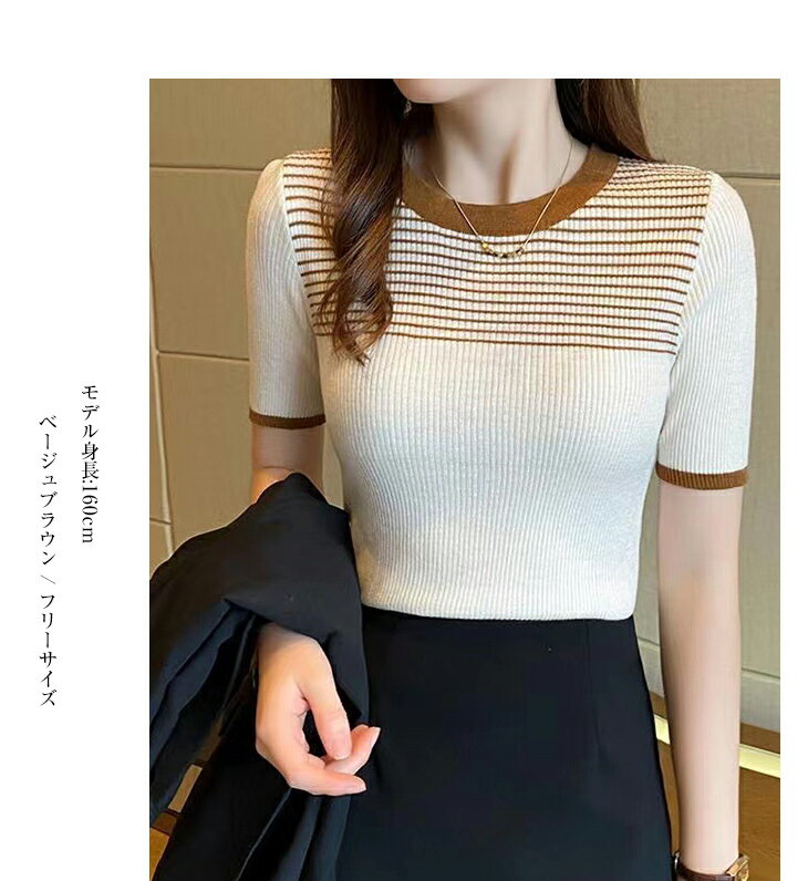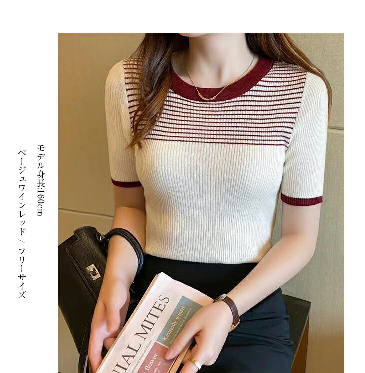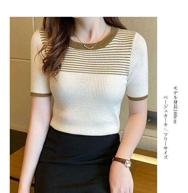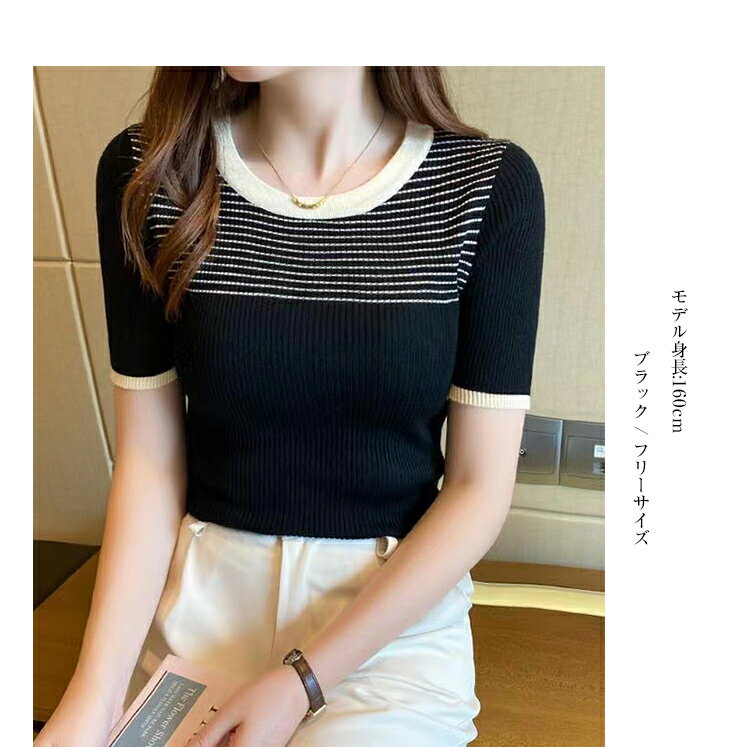 50%OFF!【期間限定:2990円→1495円!クーポンで】ラウンドネック バイカラーニット カットソー トップス 半袖 レディースファッション ゆったり 楽ちん 体型カバー カジュアル オフィス 仕事着 ふんわり 40代 50代 60代 ワンピスター 春 夏 SS 新作