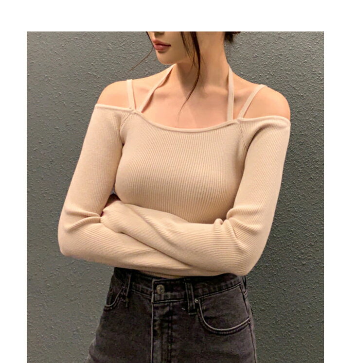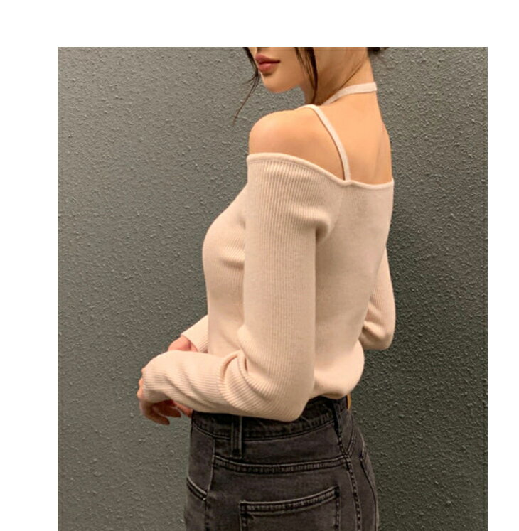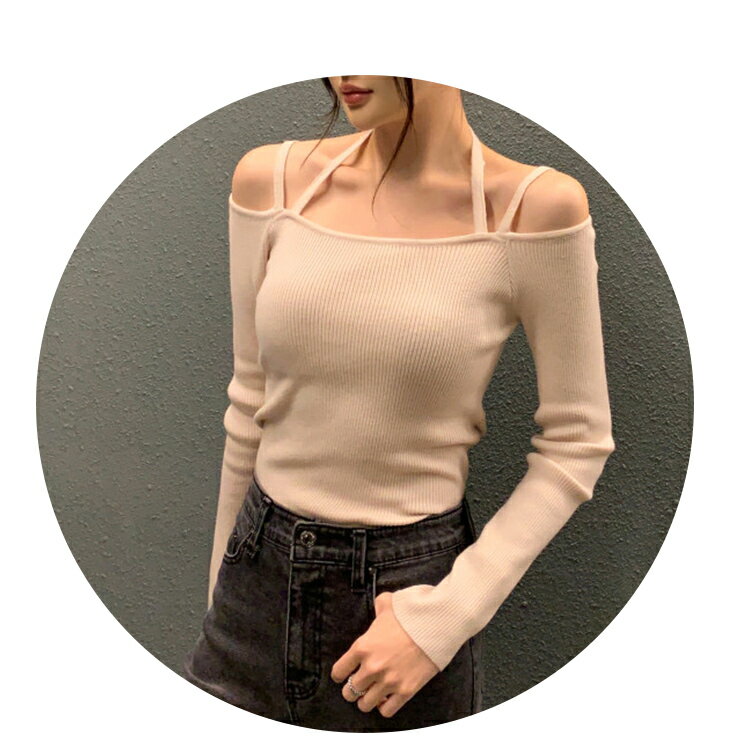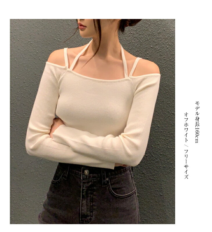 【50%OFF対象!発売記念クーポンで】オフショルダー 肩紐 ニット トップス 長袖 レディースファッション 40代 50代 60代 ゆったり 楽ちん 体型カバー カジュアル エレガント ふんわり ワンピスター 春 秋 新作 春物 秋物 韓国風 韓国ファッション
