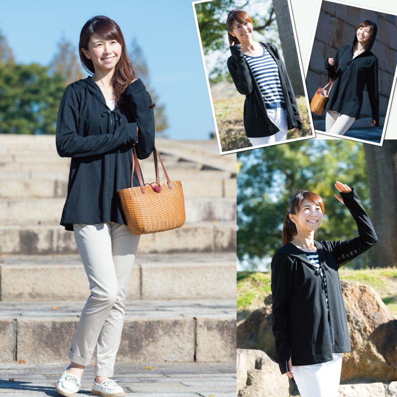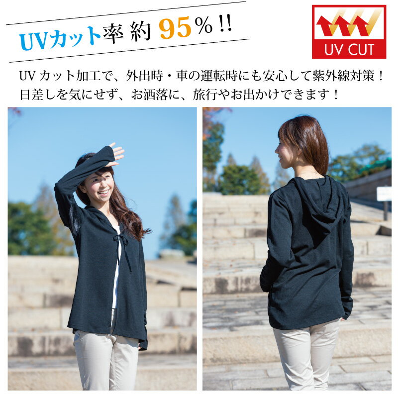 【15%off&P2☆楽天スーパーセール♪6/4 20:00~6/11 01:59】【UV遮蔽率95%】 パーカー UVカット 無地 黒 ロング 手の甲 運転時 紫外線対策 涼しい ゆったり オフィス 冷房対策 日焼け防止 長袖 おしゃれ ナチュラル フード 軽い M L LL 3L 春 夏 レディース