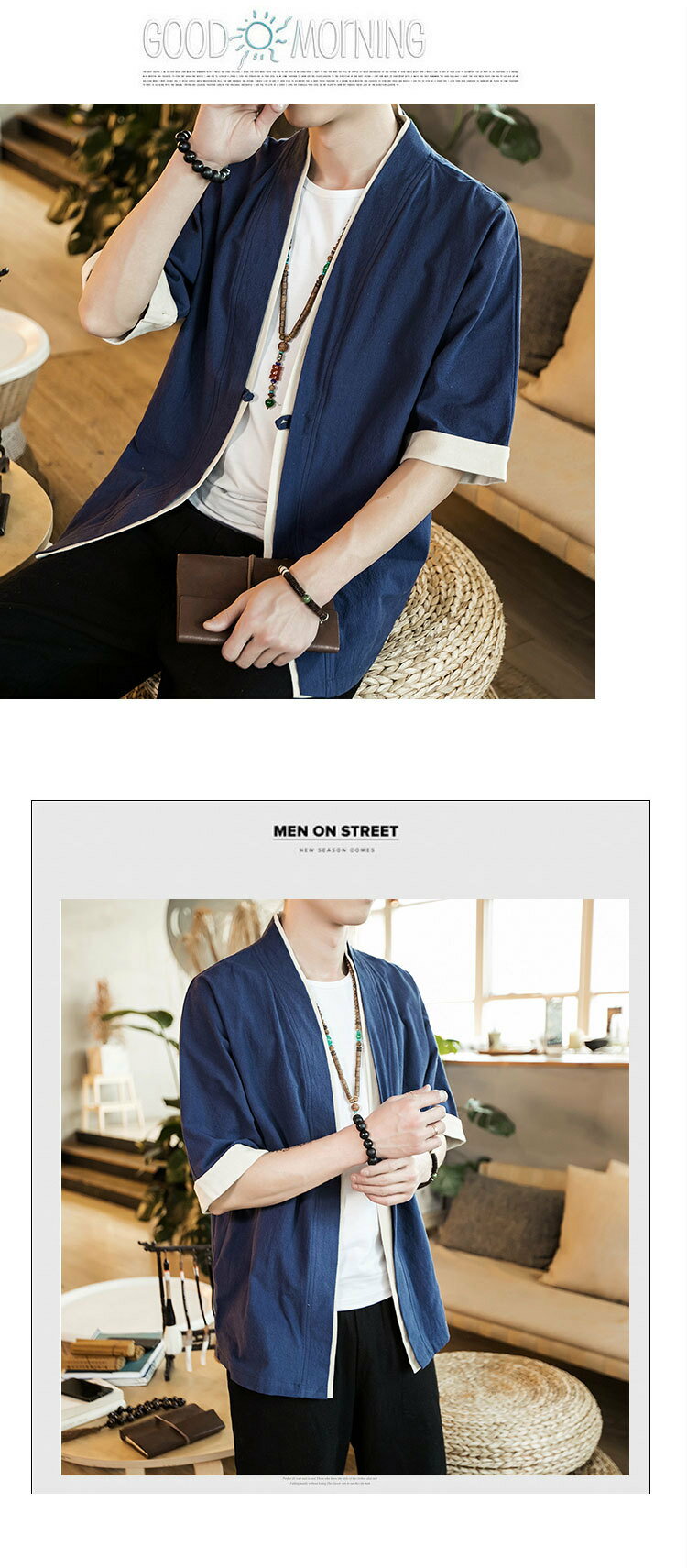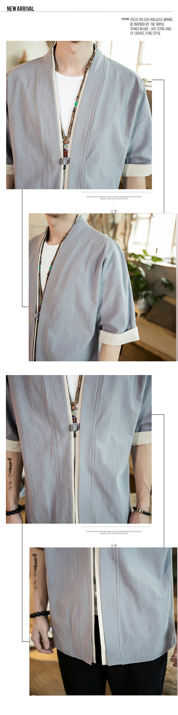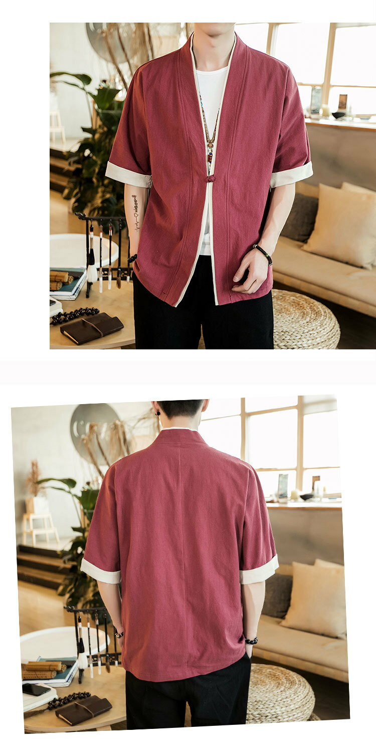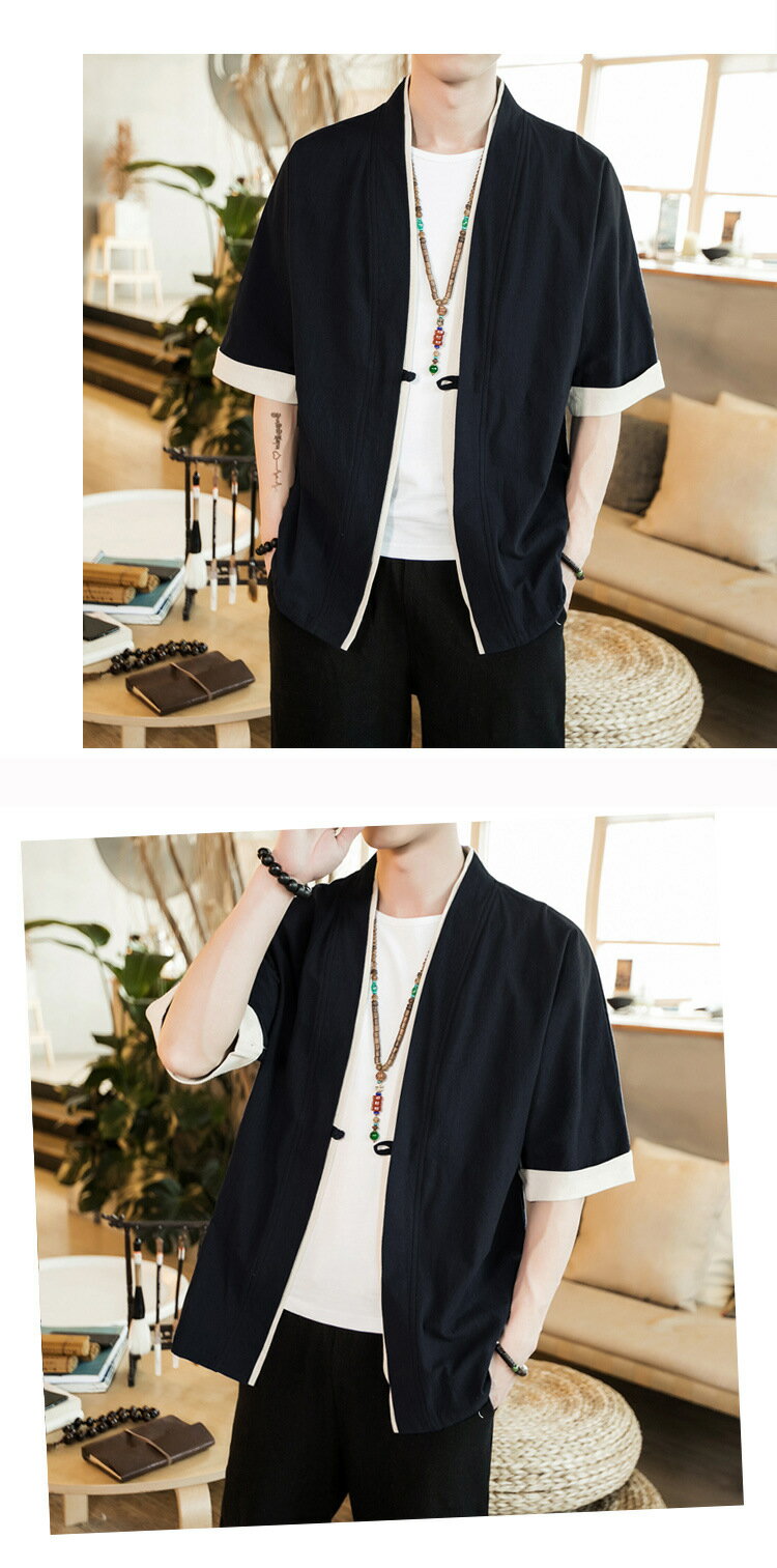 コート夏服 メンズ 無地 和風 羽織 パーカー 五分袖 和式 カーディガン 一つボタン シンプル トップス ゆったり カジュアル おしゃれ 大きいサイズ