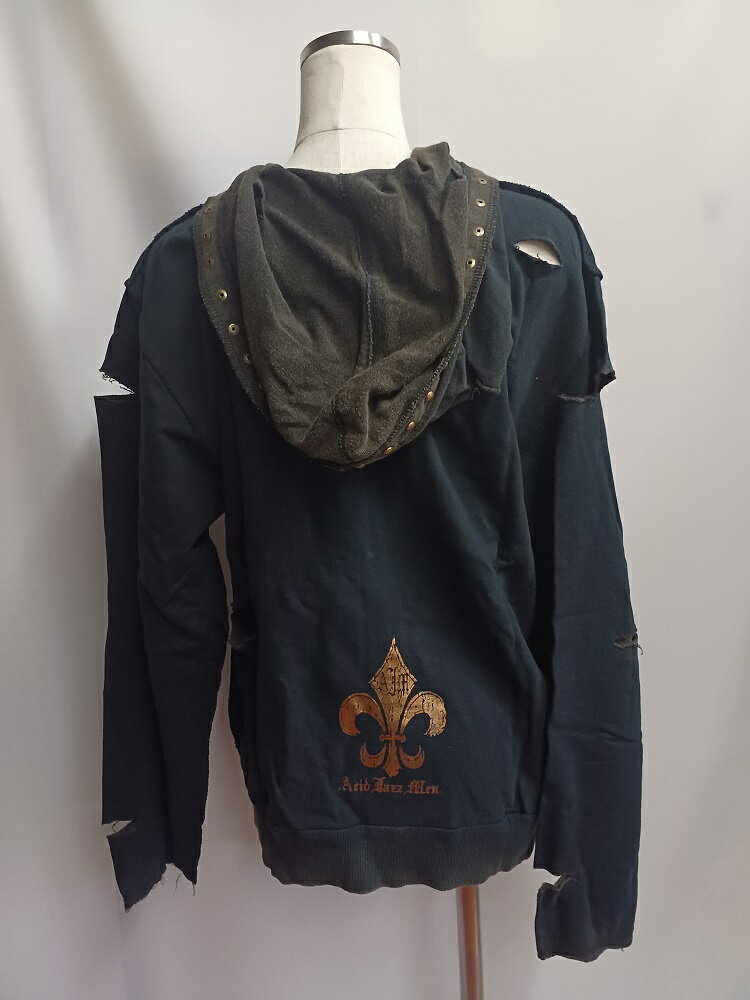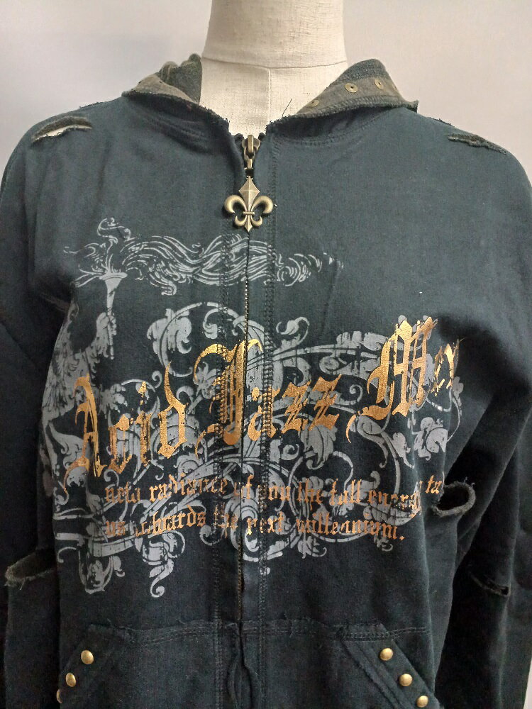 ACID JAZZ MEN ダメージ加工 ジップアップパーカー 黒 M(L) ロック系 PUNK系 ZIP スタッズ