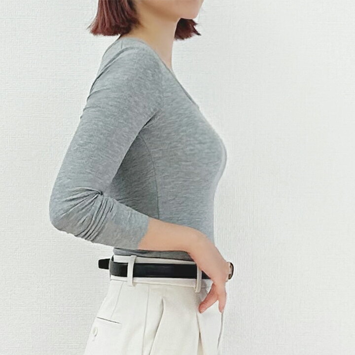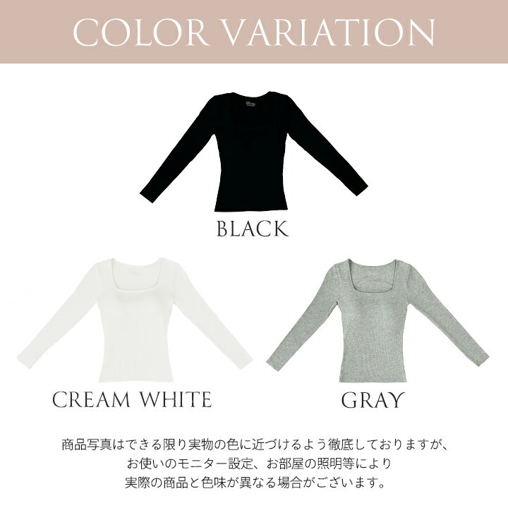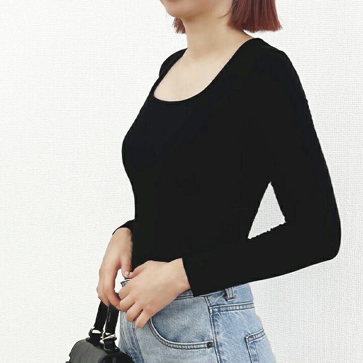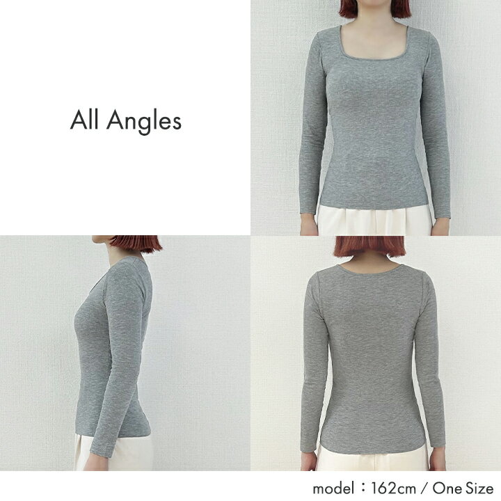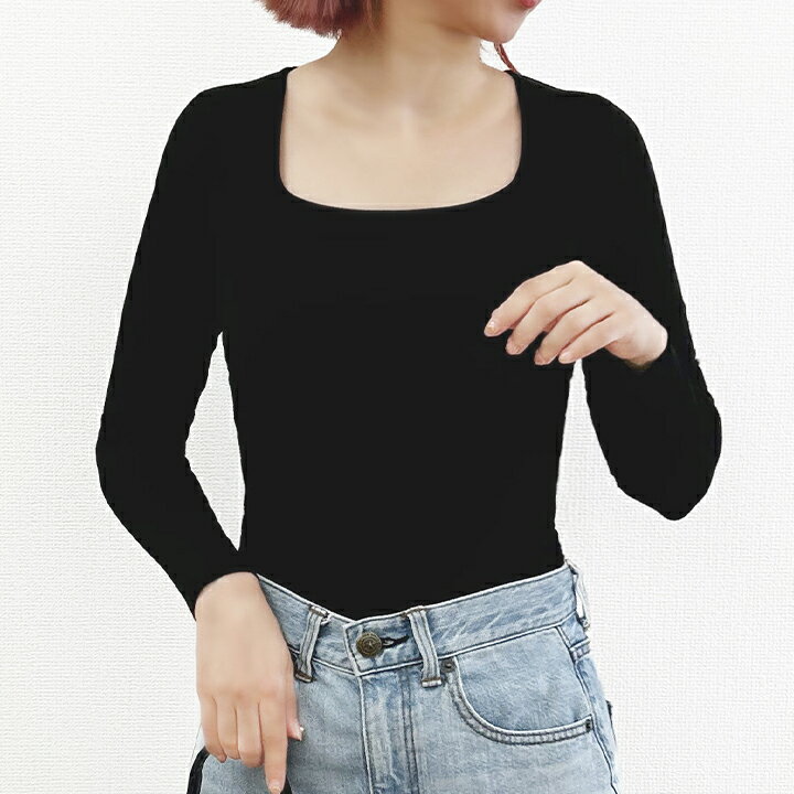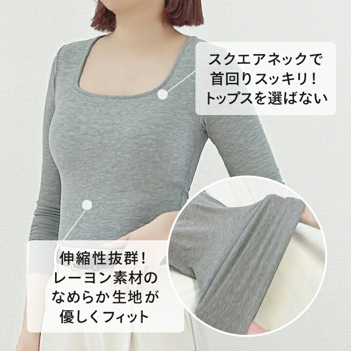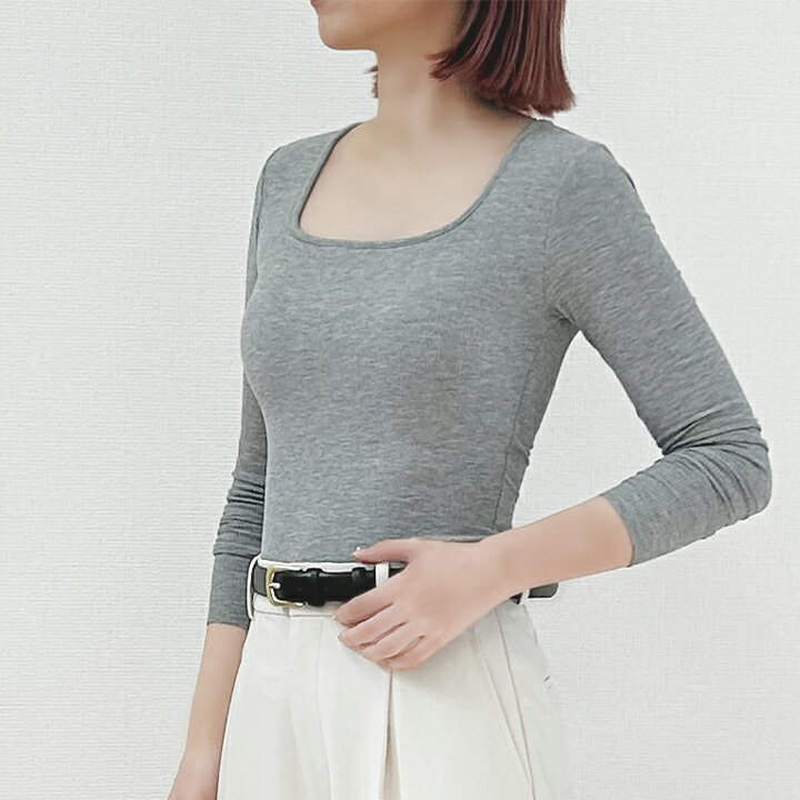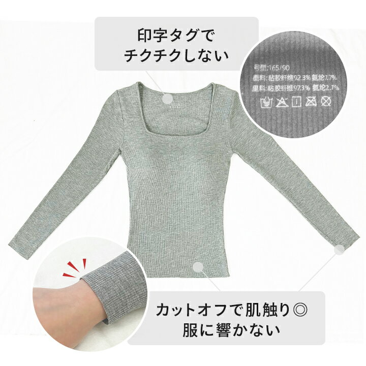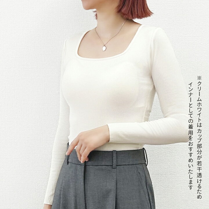 スクエアネック カップ付き リブ カットソー ブラトップ 暖かい あったか しっとり なめらか 秋 冬