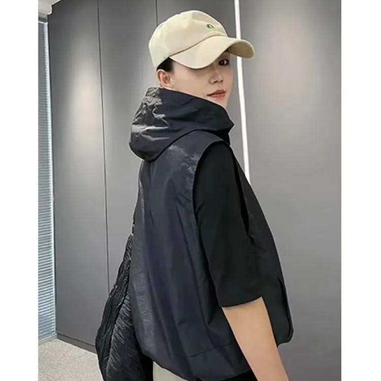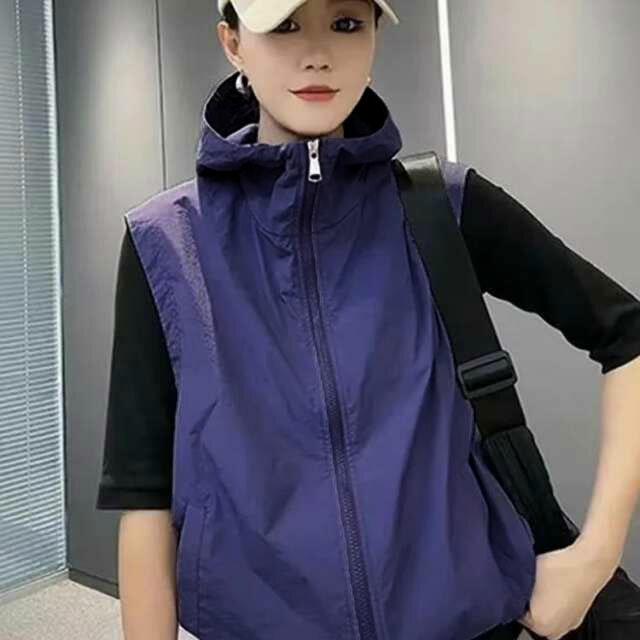 シンプル 春 半袖 涼しい アウター 大きいサイズ 送料無料 パープル 半袖パーカー 春夏 ベスト ゆったり フード付き 春夏 ジップアップ レディース 切り替え 無地 きれいめ カジュアル 前開き レディース トップス
