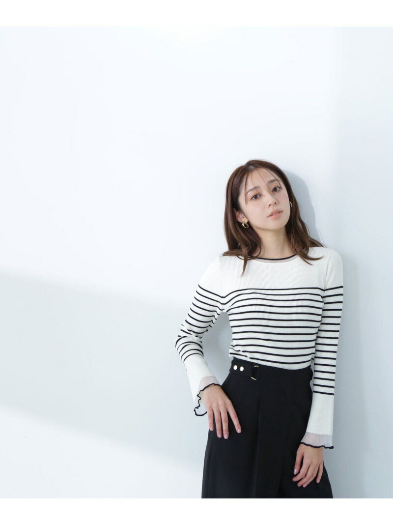 ボートネックシアーカフスニット NATURAL BEAUTY BASIC ナチュラルビューティベーシック トップス ニット ホワイト グレー ブラック グリーン【送料無料】[Rakuten Fashion]