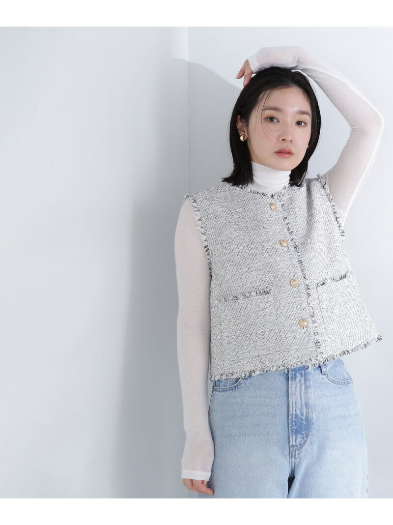 スプリングツイード ショートジレ NATURAL BEAUTY BASIC ナチュラルビューティベーシック ジャケット・アウター ブルゾン・ジャンパー ブラック ホワイト【送料無料】[Rakuten Fashion]