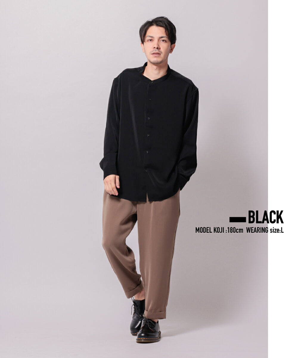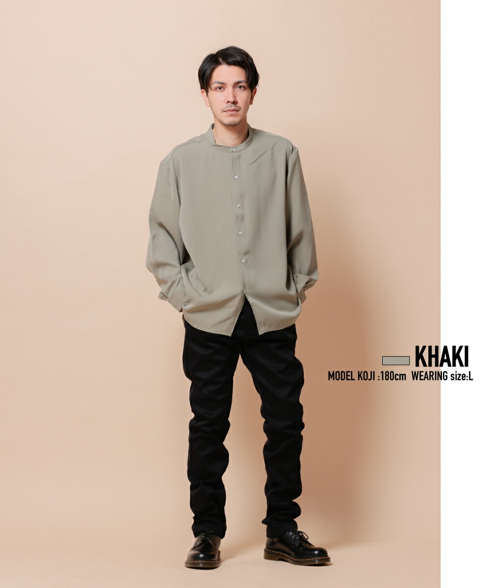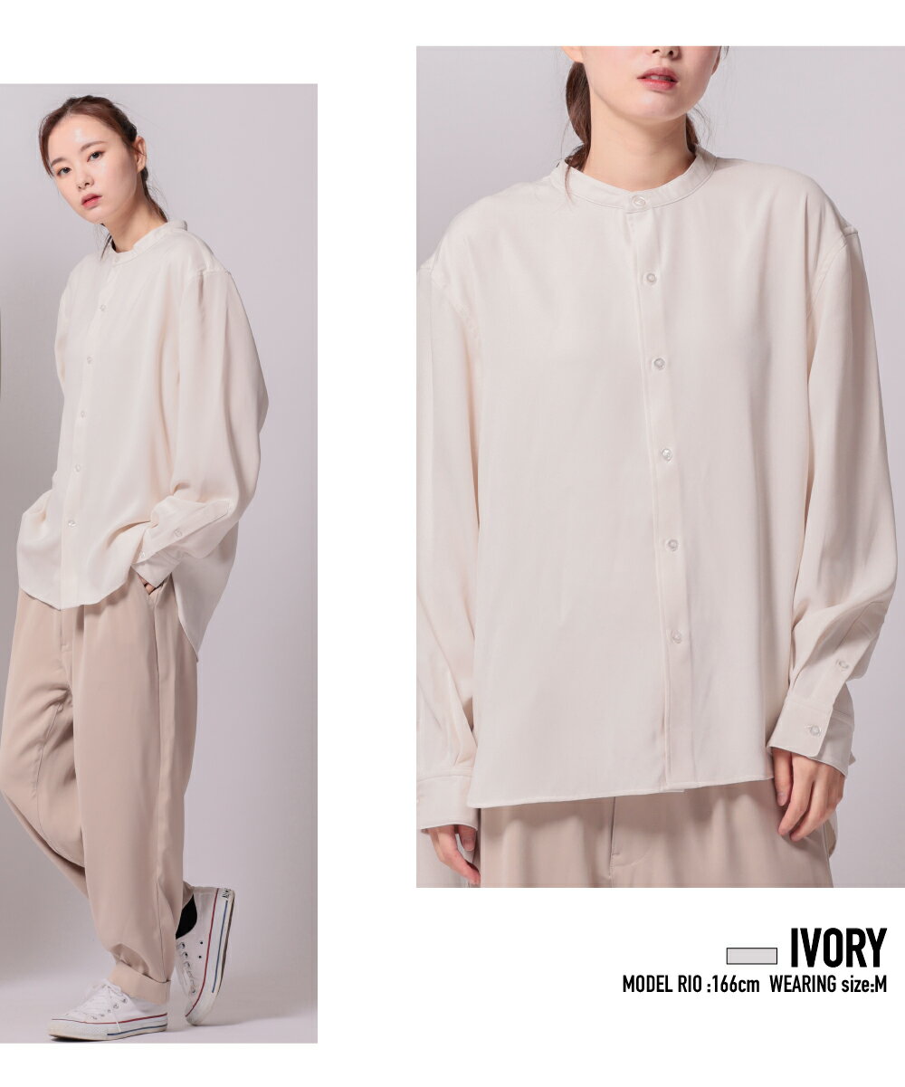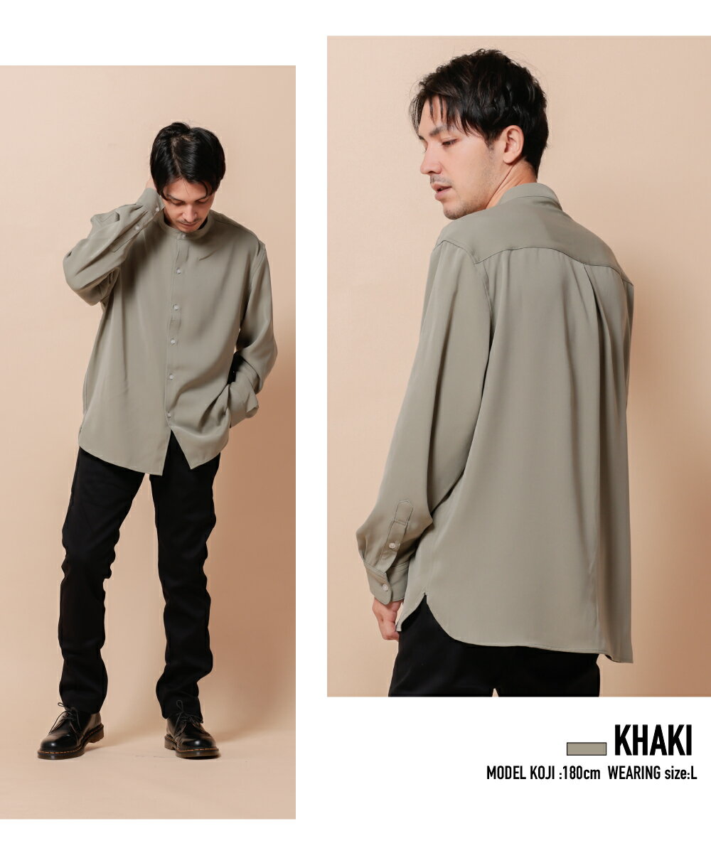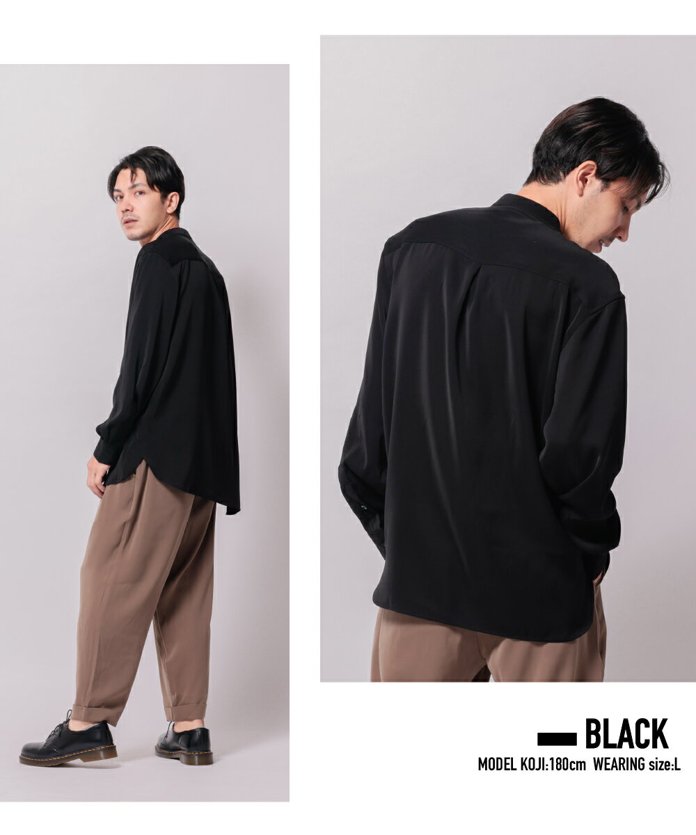 シャツ メンズ BIGサイズ 大きいサイズ ポリトロバンドカラーシャツ ポリエステル ポリトロ 大人 シャツ メンズ 長袖 大きいサイズ 上品 トップス 無地 アイボリー ブラック レディース 男女兼用 メンズファッション 送料無料