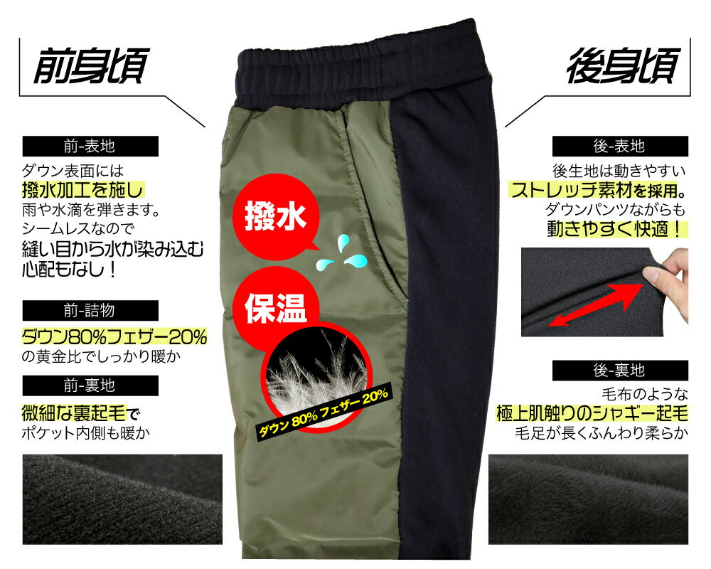 防風パンツ シームレス ダウンパンツ ダウンジョガーパンツ ゴルフウエア シャーリング ダウン 中綿 フェザー あったか アウトドア 通勤 防寒 メンズ 暖パン あったかパンツ ゴルフ ウエア パンツ 秋 冬 S M L XL
