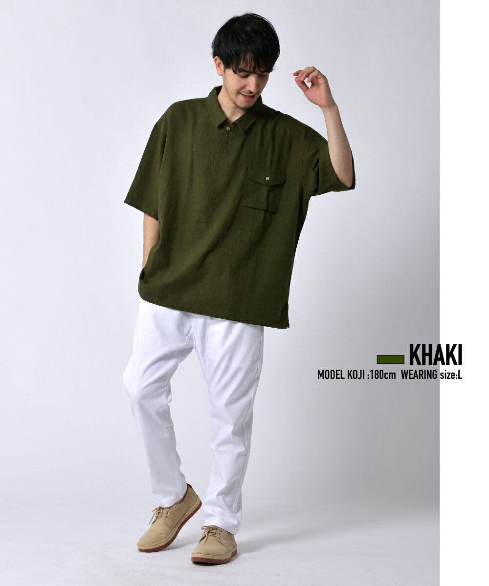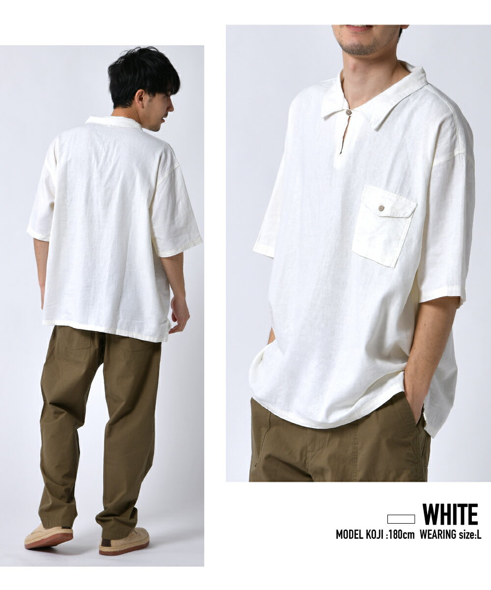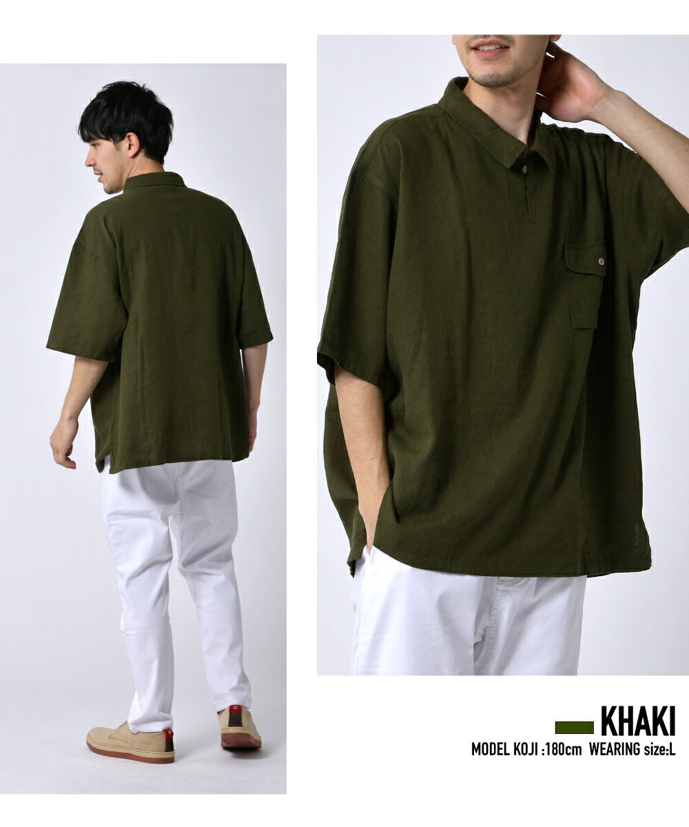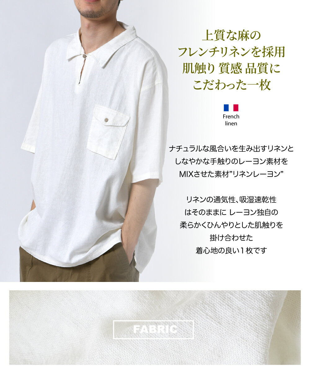 リネンシャツ スキッパーシャツ BIGシルエット メンズ シャツ 半袖 フレンチリネン プルオーバー 夏 夏服 夏物 ホワイト ブラック カーキ ベージュ M L XL 送料無料