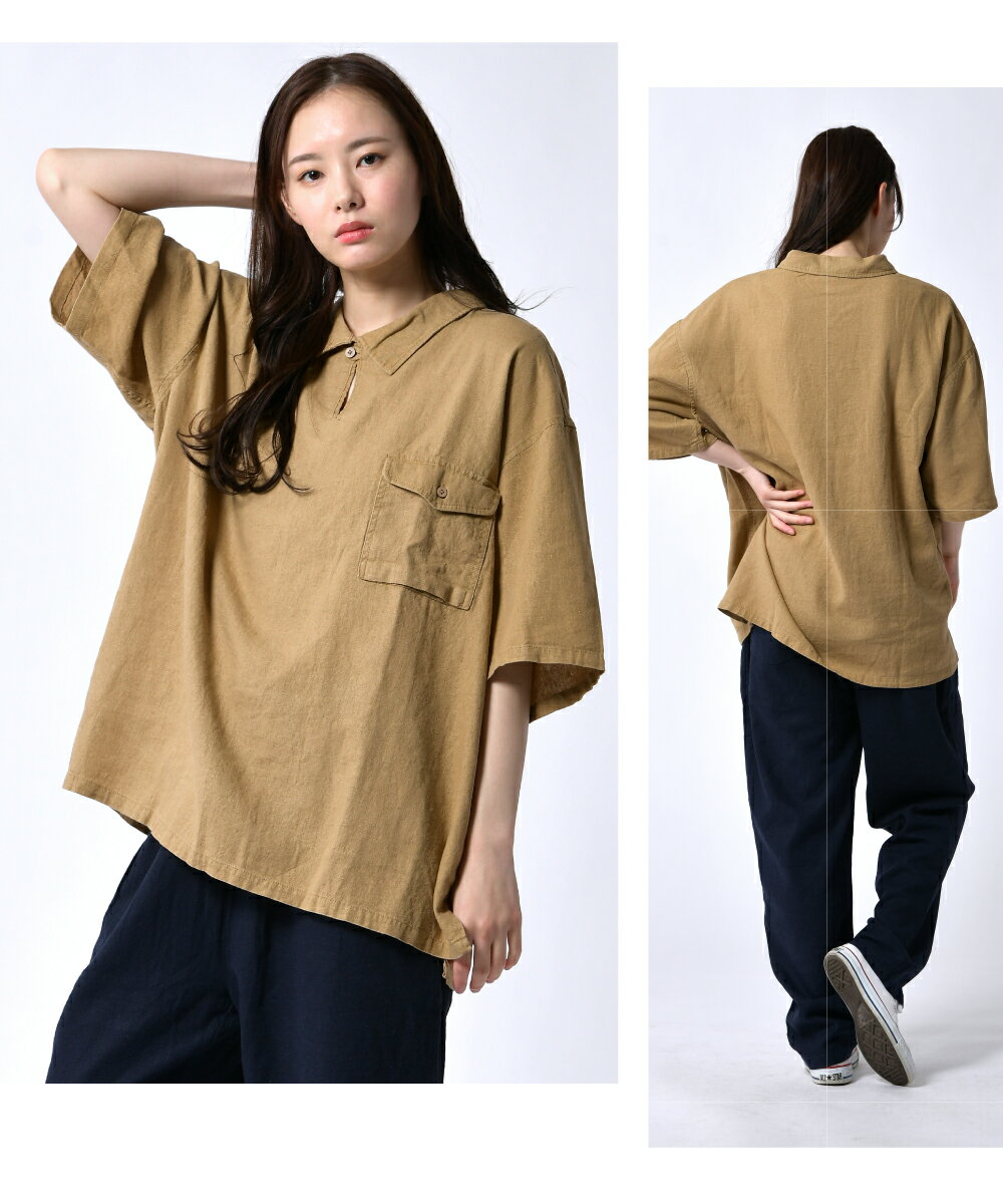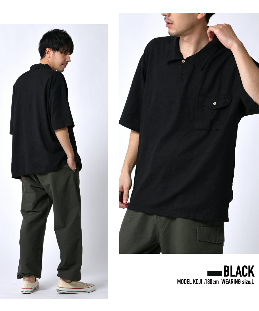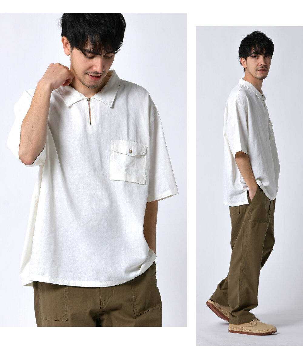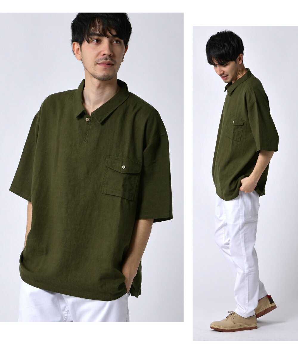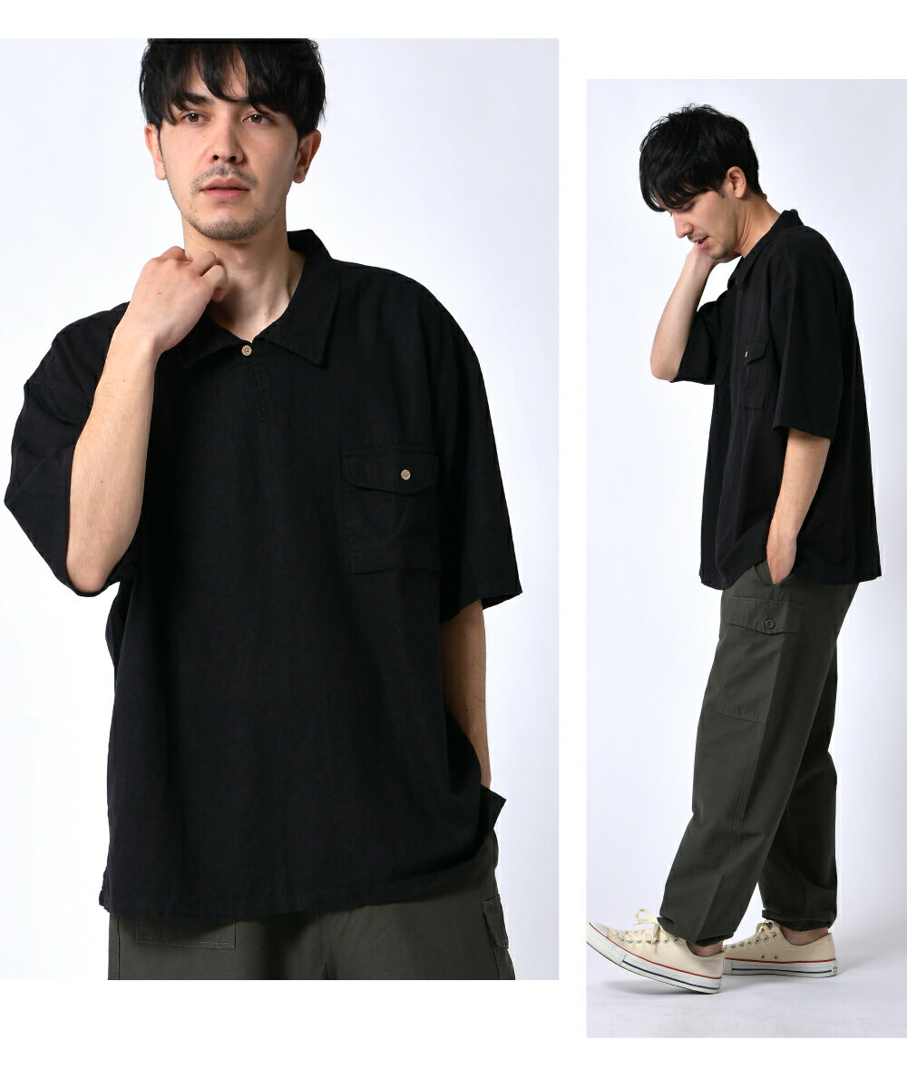 リネンシャツ スキッパーシャツ BIGシルエット メンズ シャツ 半袖 フレンチリネン プルオーバー 夏 夏服 夏物 ホワイト ブラック カーキ ベージュ M L XL 送料無料