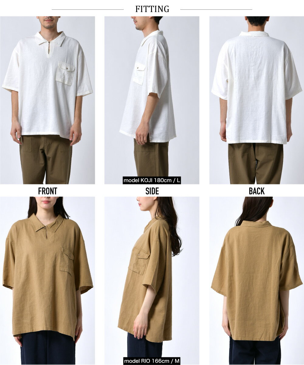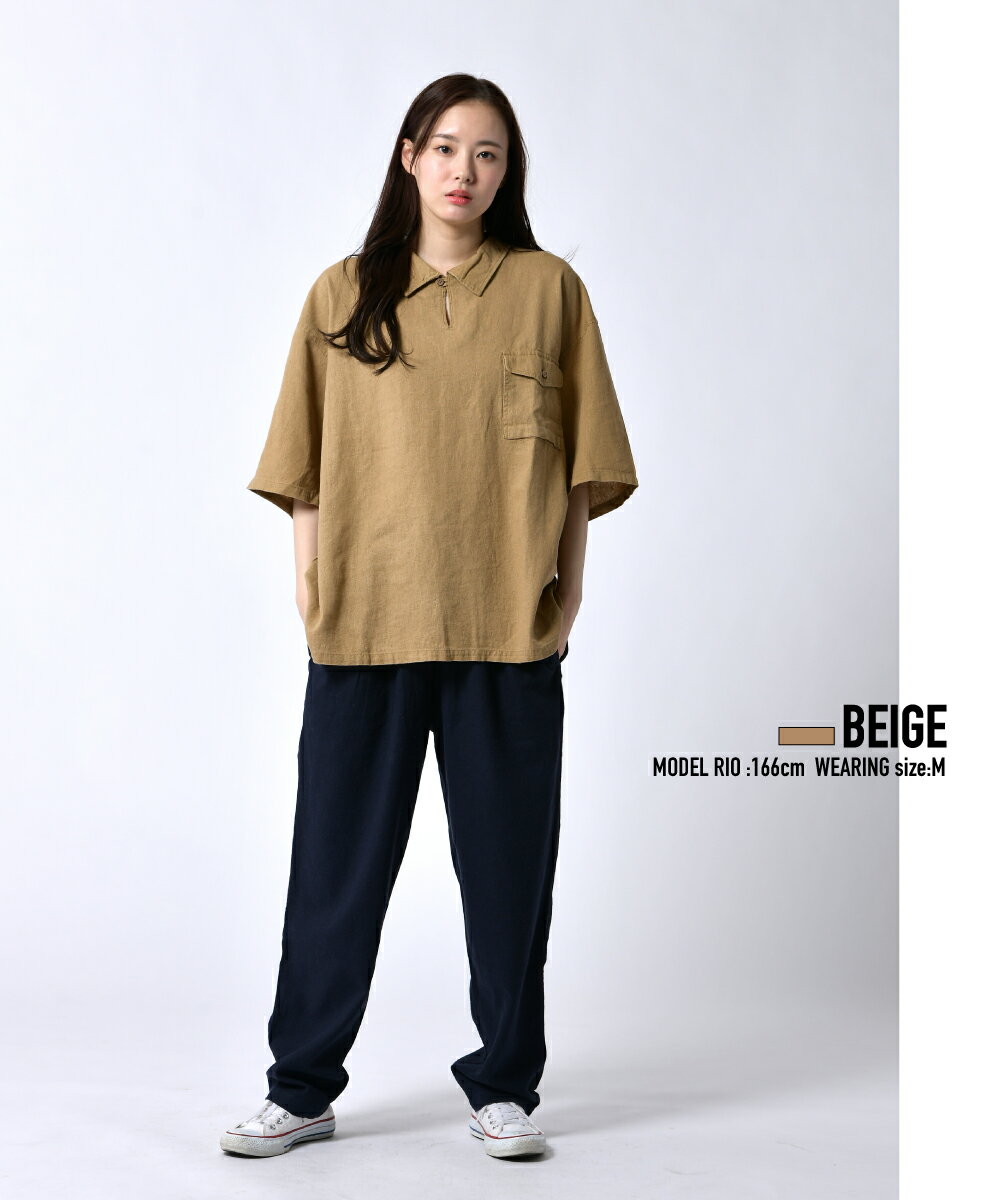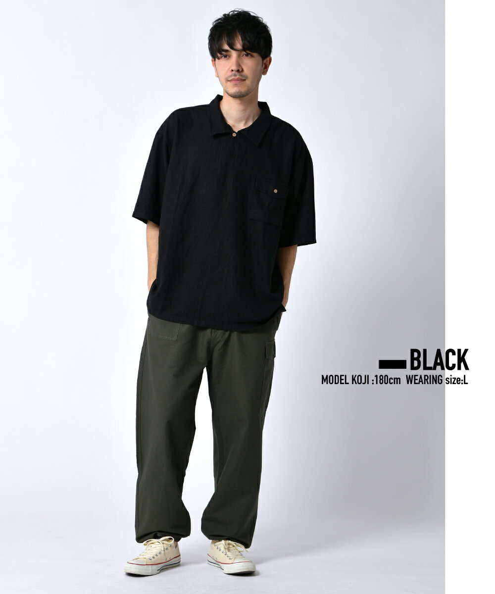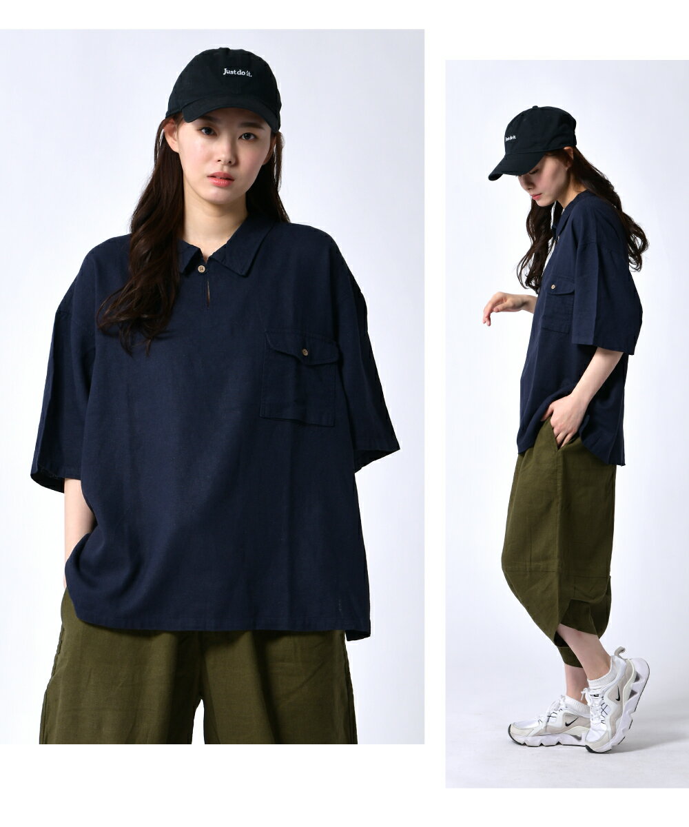 リネンシャツ スキッパーシャツ BIGシルエット メンズ シャツ 半袖 フレンチリネン プルオーバー 夏 夏服 夏物 ホワイト ブラック カーキ ベージュ M L XL 送料無料