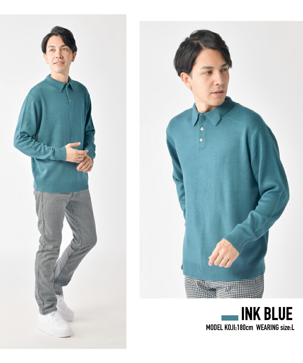 カシミヤポロ ポロニット ニット ポロシャツ セーター カシミヤタッチ メンズ スクールニット ビジネス ニット 無地 長袖 秋 秋物 秋服 冬 冬服 冬物 春 春服 春物 男女兼用 送料無料
